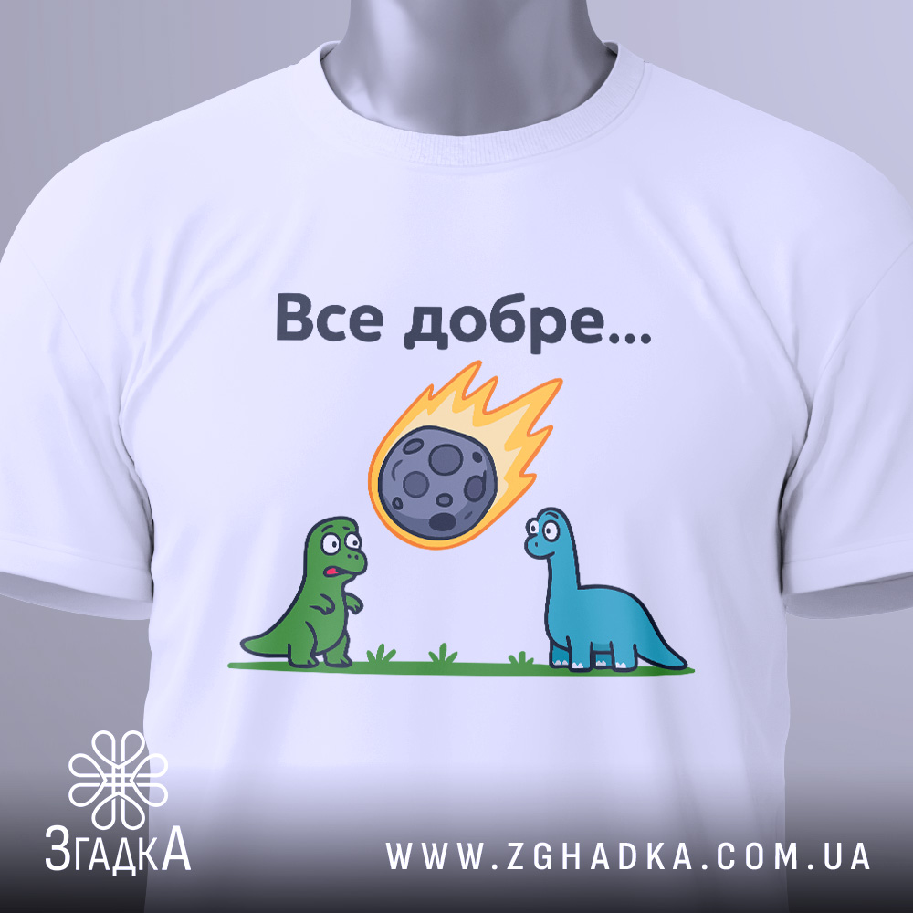 На принті зображені яскраві динозаври, які дарують позитивні емоції. Ця футболка створена для тих, хто любить веселощі та оригінальність. Замовляйте зараз і підкресліть свій стиль!