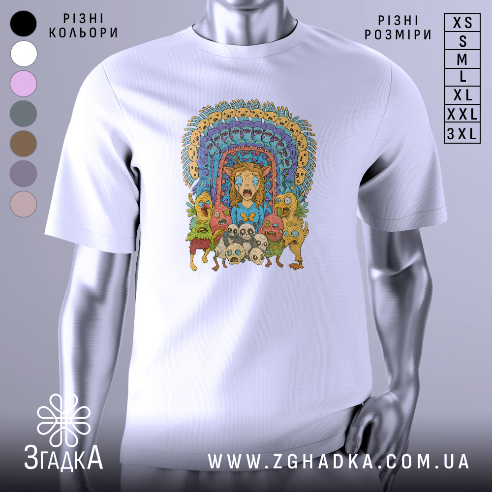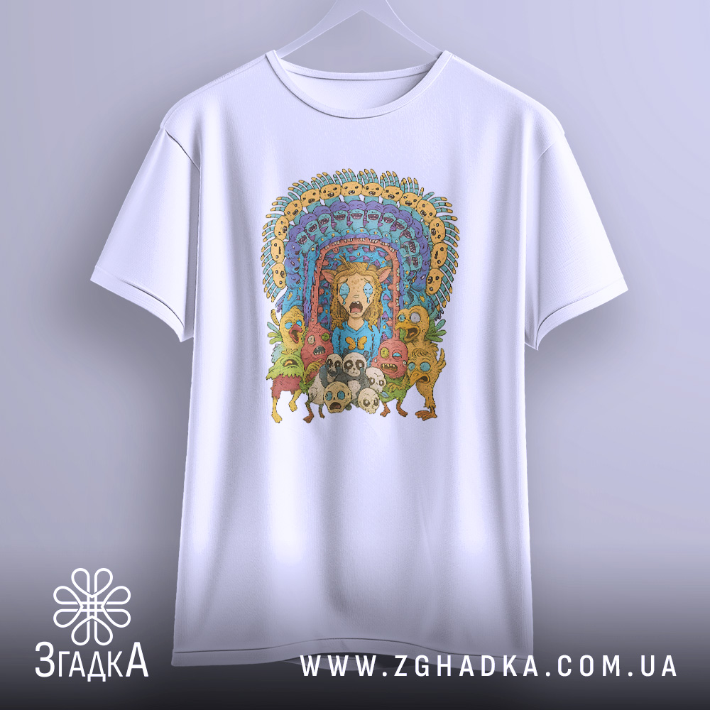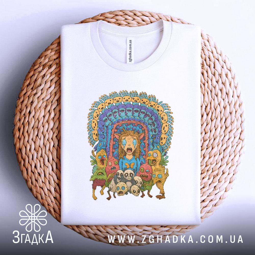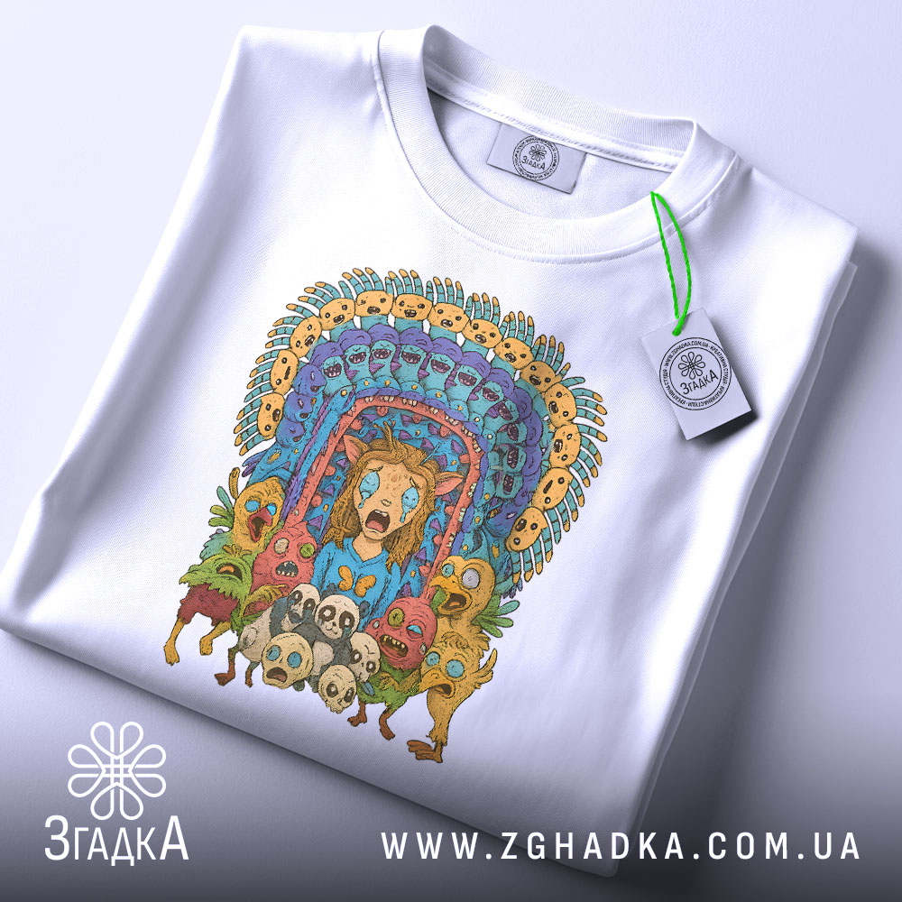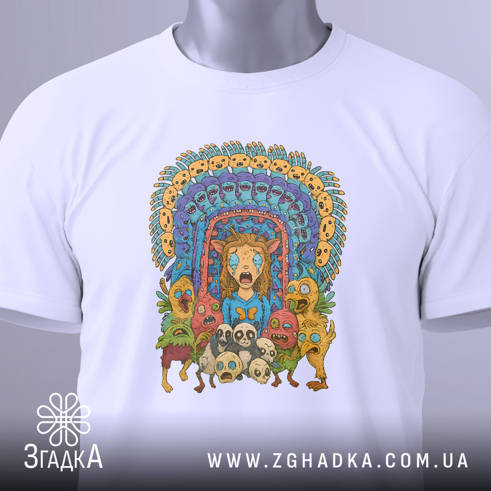 Футболка з принтом ‘дивні істоти’ – це не просто одяг, а спосіб висловити свою індивідуальність. Додайте яскраві кольори та оригінальний дизайн у своє життя!