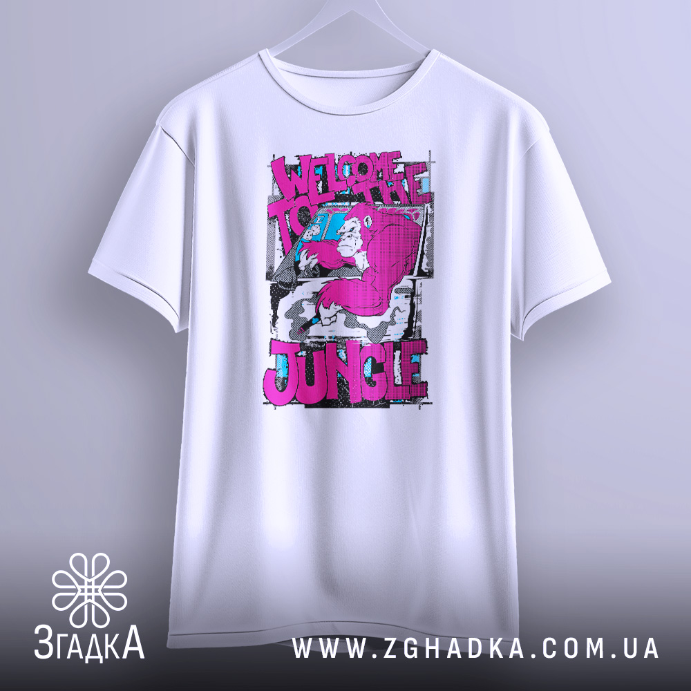 Футболка джунглі стиль вражає яскравим принтом та комфортом. Ідеальний вибір для любителів природи та активного способу життя.
