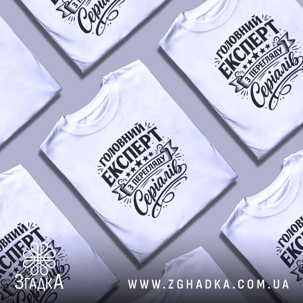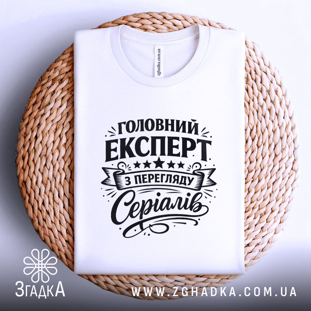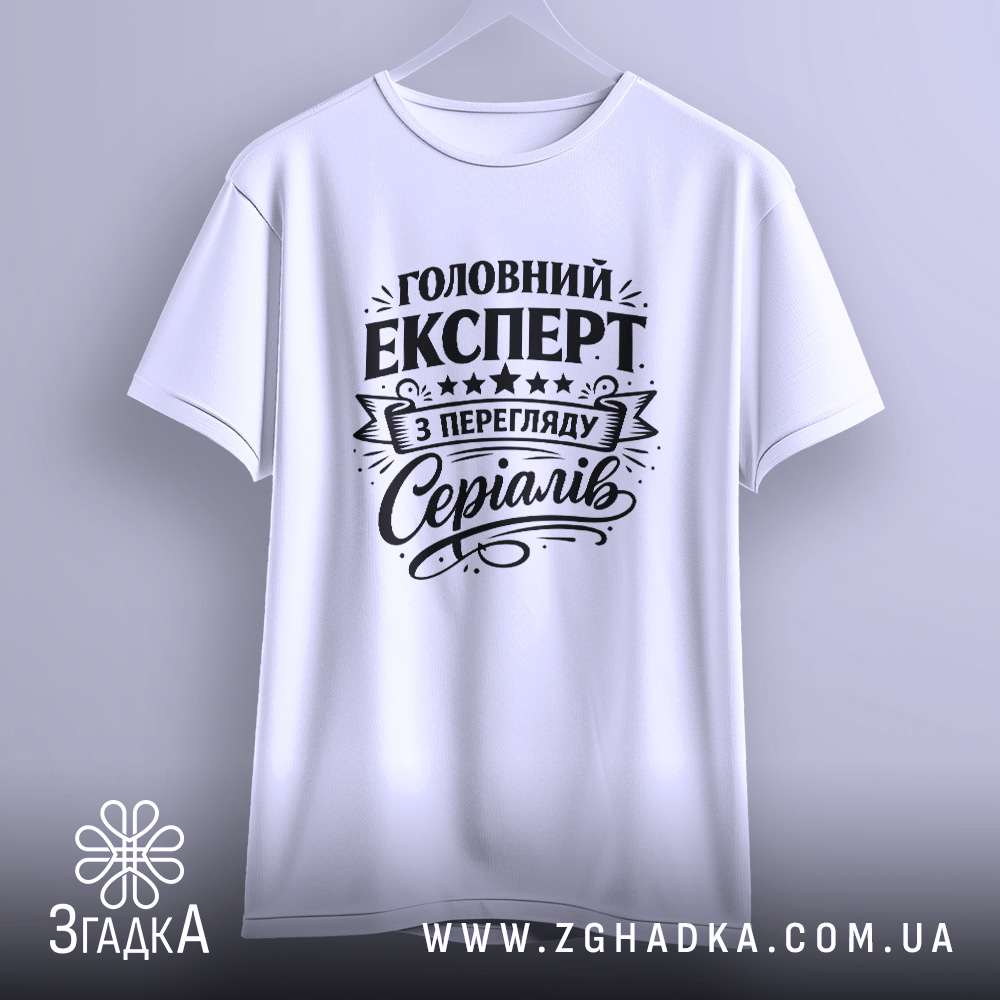 Футболка експерт з перегляду серіалів – це не просто одяг, а вираження вашої особистості. Принт на футболці говорить про вашу пристрасть до серіалів і здатність оцінювати їх на професійному рівні.