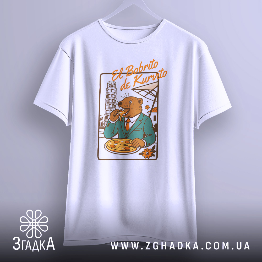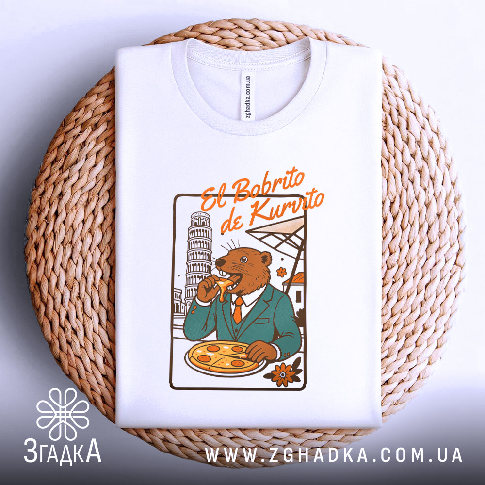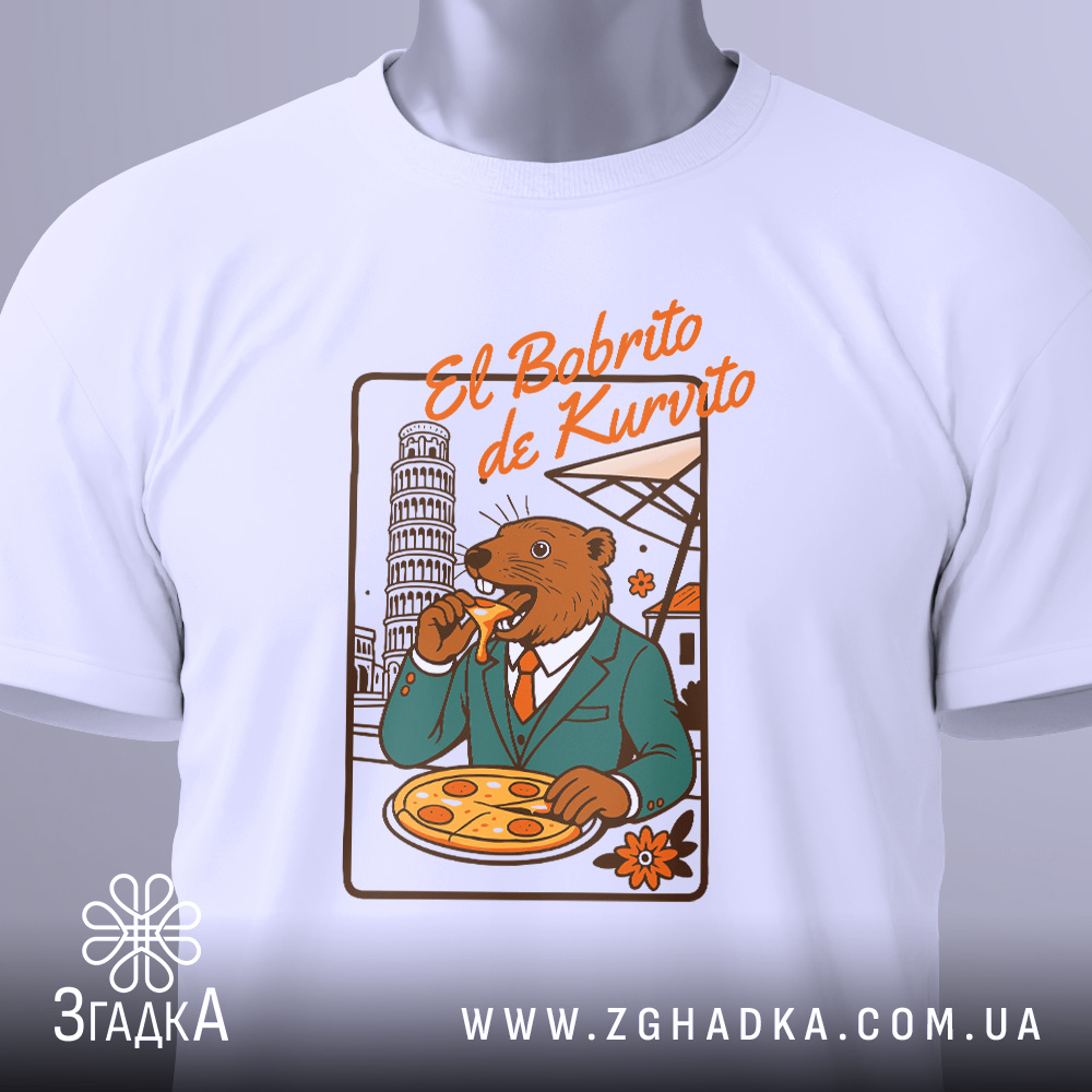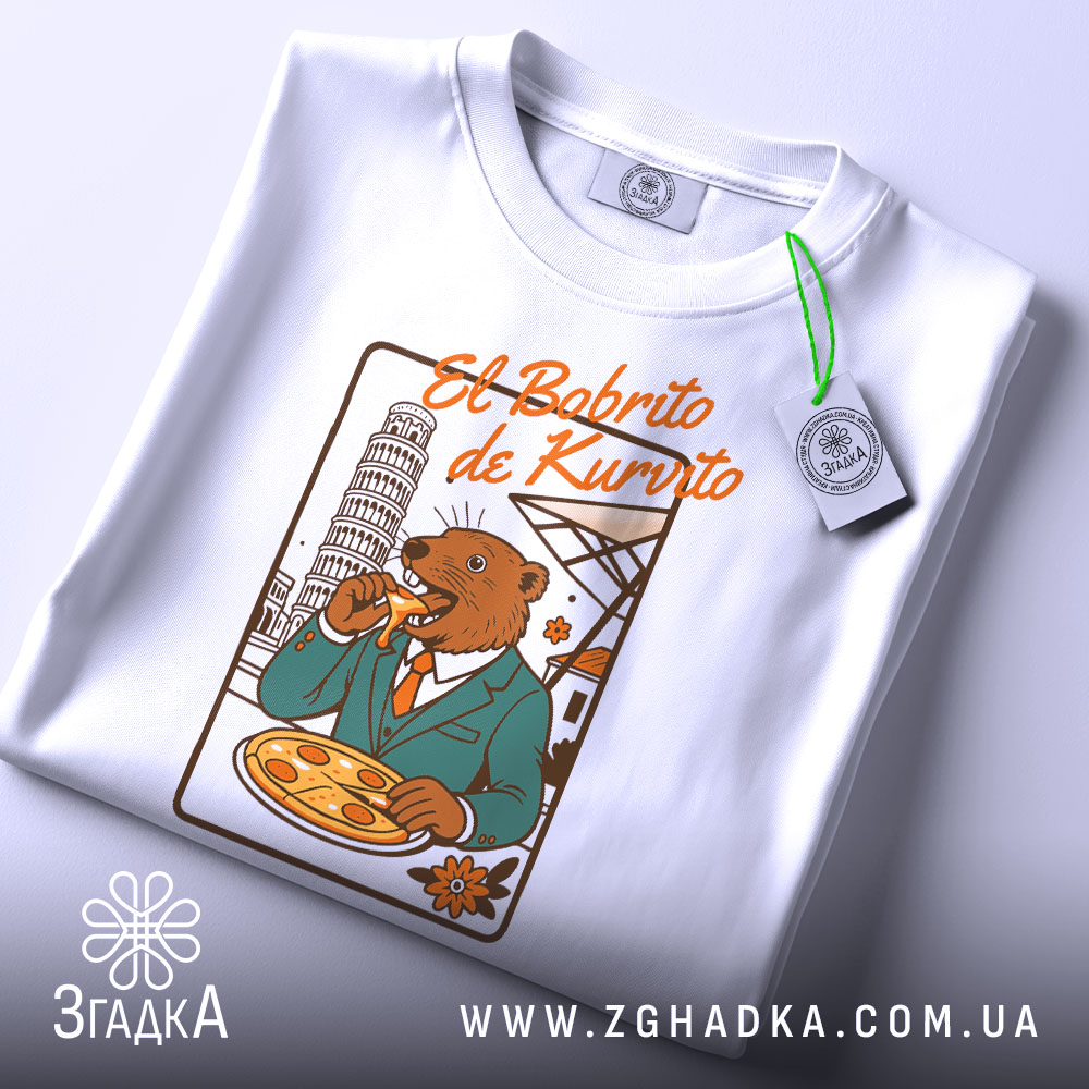 На принті футболки El Bobrito зображено яскравий і кумедний малюнок, що викликає усмішку. Цей стильний аксесуар додасть емоцій у ваш повсякденний образ. Не пропустіть можливість виділитися!