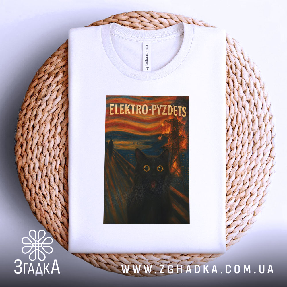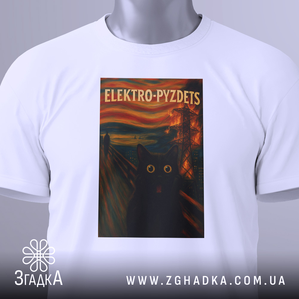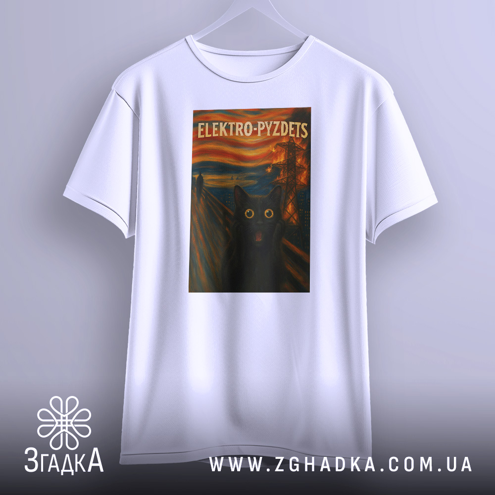 Стильна футболка з принтом електро крик кіт. Ідеальний вибір для любителів котів та оригінального стилю.