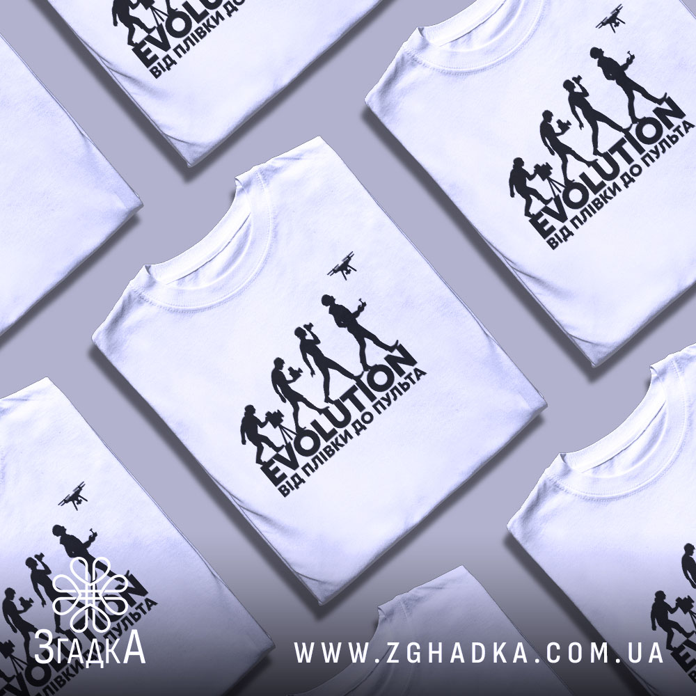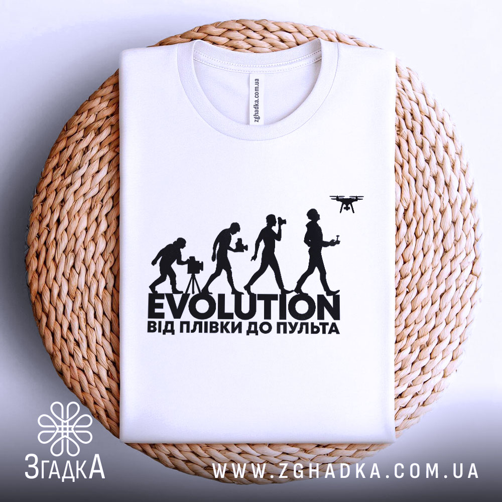 Ця футболка еволюція – це не просто одяг, а вираження вашого стилю. Принт символізує розвиток моди та особистості, що робить її ідеальним вибором для творчих людей.