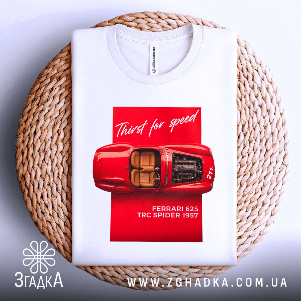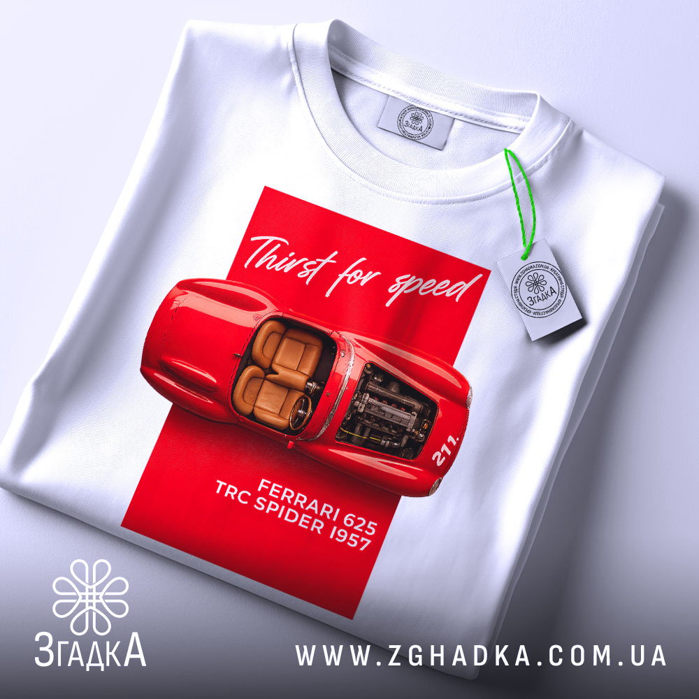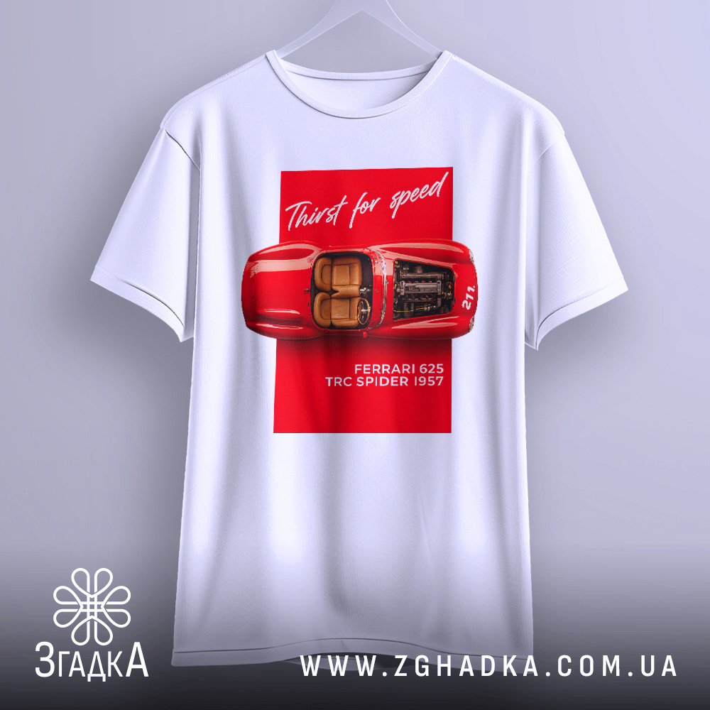 Ця футболка прикрашена яскравим принтом, що відображає дух швидкості та елегантності Ferrari. Вона створена для тих, хто цінує стиль та комфорт. Не пропустіть шанс стати частиною цієї легенди!