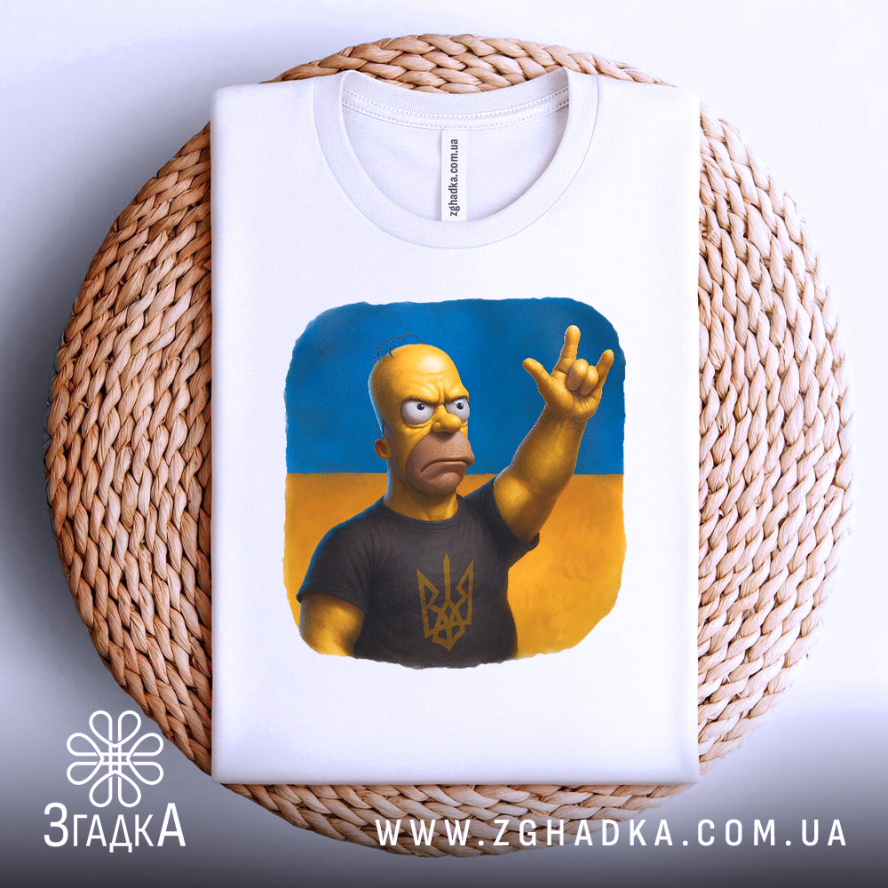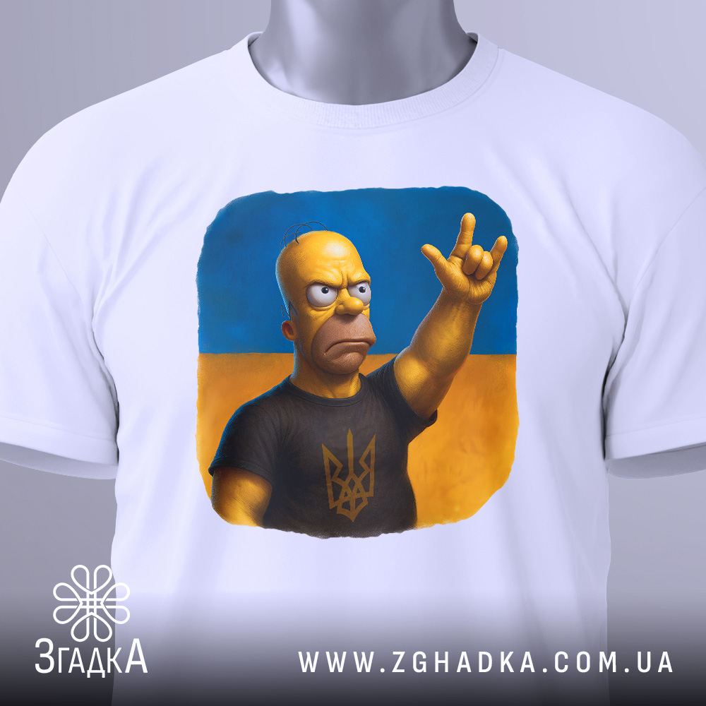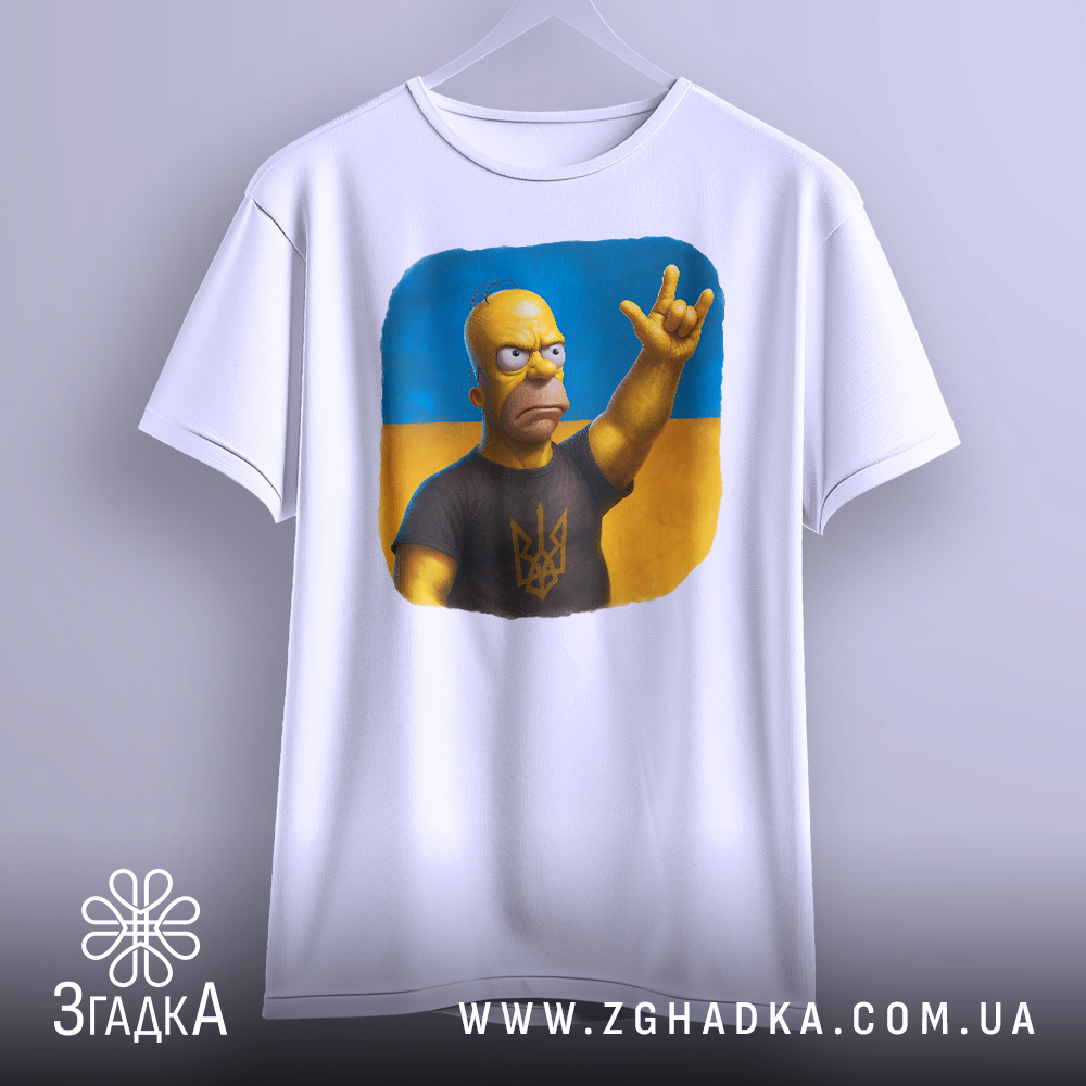 Ця футболка виконана з якісних матеріалів і має унікальний принт, що символізує національну гордість. Гомер, зображений з тризубом, нагадує про важливість культури та традицій. Вона стане яскравим акцентом у вашому стилі.