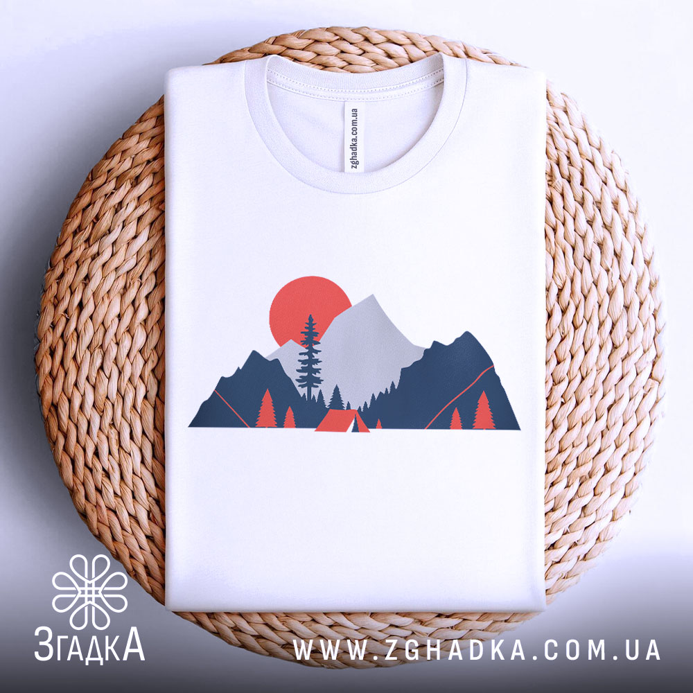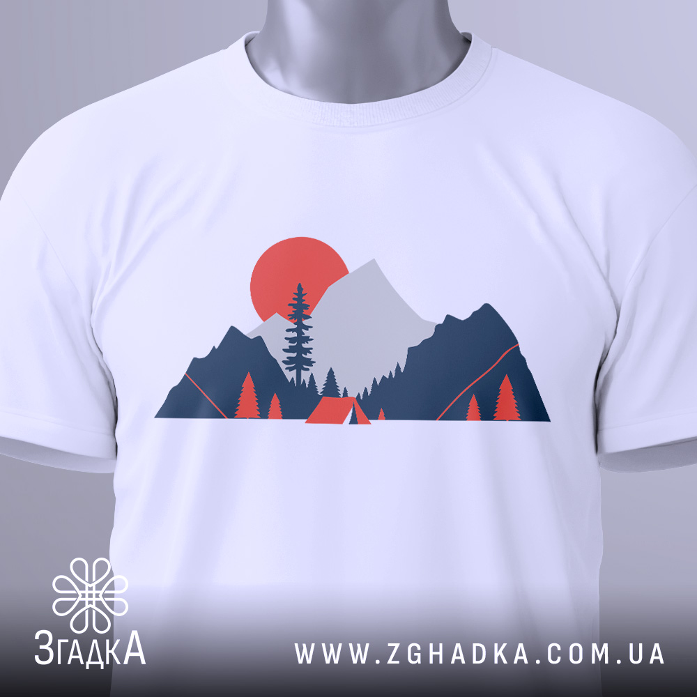 Ця футболка з принтом гір надихає на пригоди та подорожі. Відчуйте емоцію свободи та єднання з природою, одягнувши її на наступний кемпінг. Замовте зараз!
