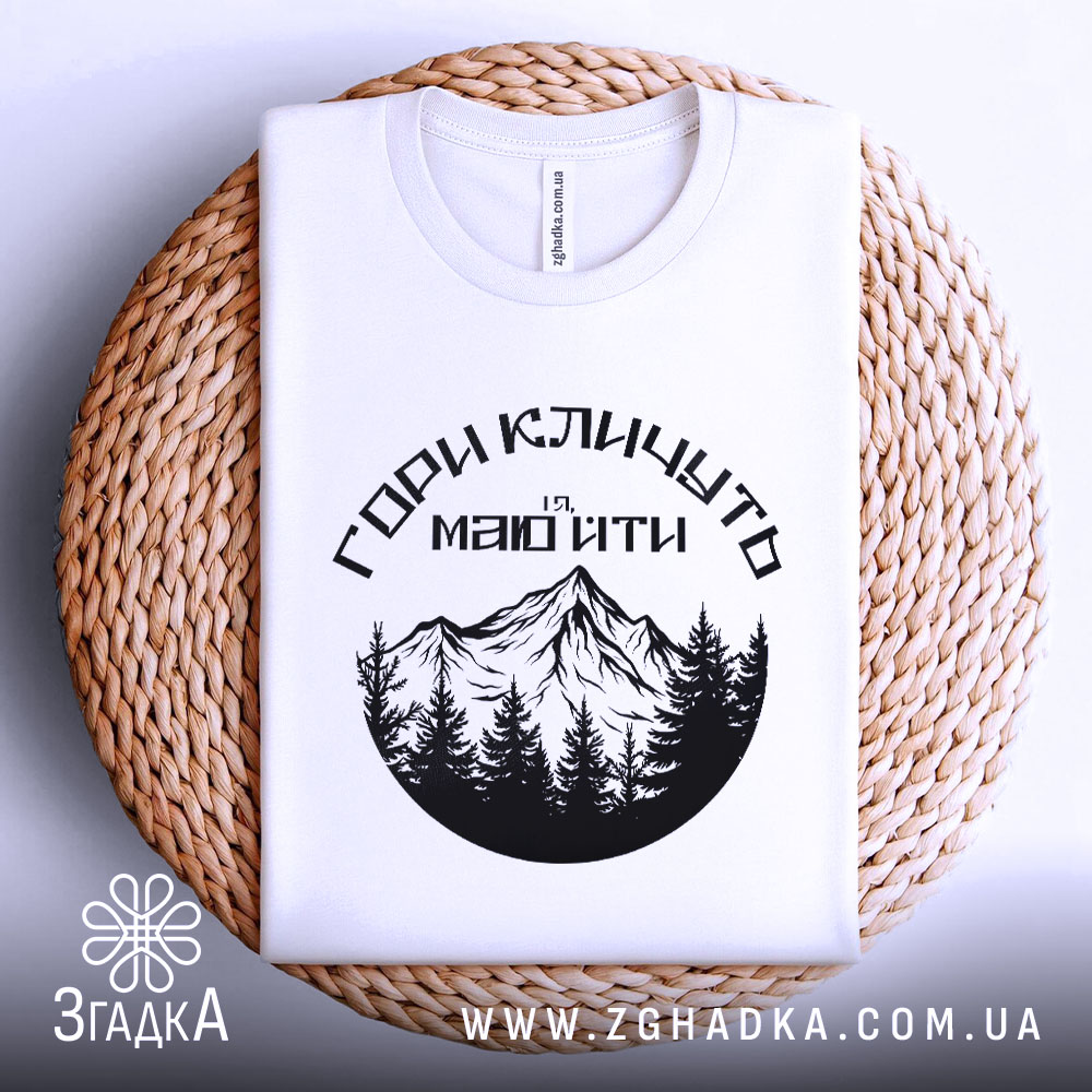 Футболка гори кличуть – ідеальний вибір для любителів природи. Стильний дизайн та комфорт забезпечать вам відчуття свободи.