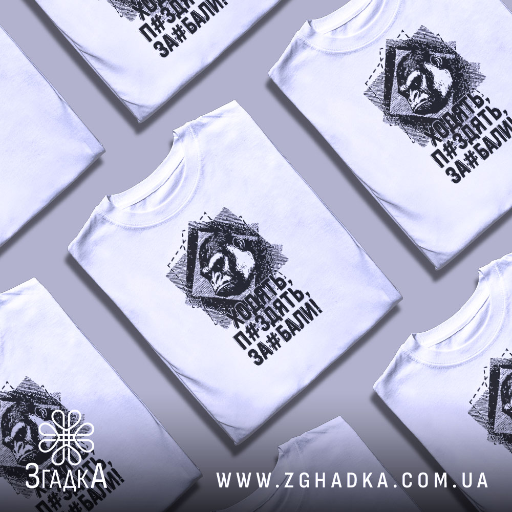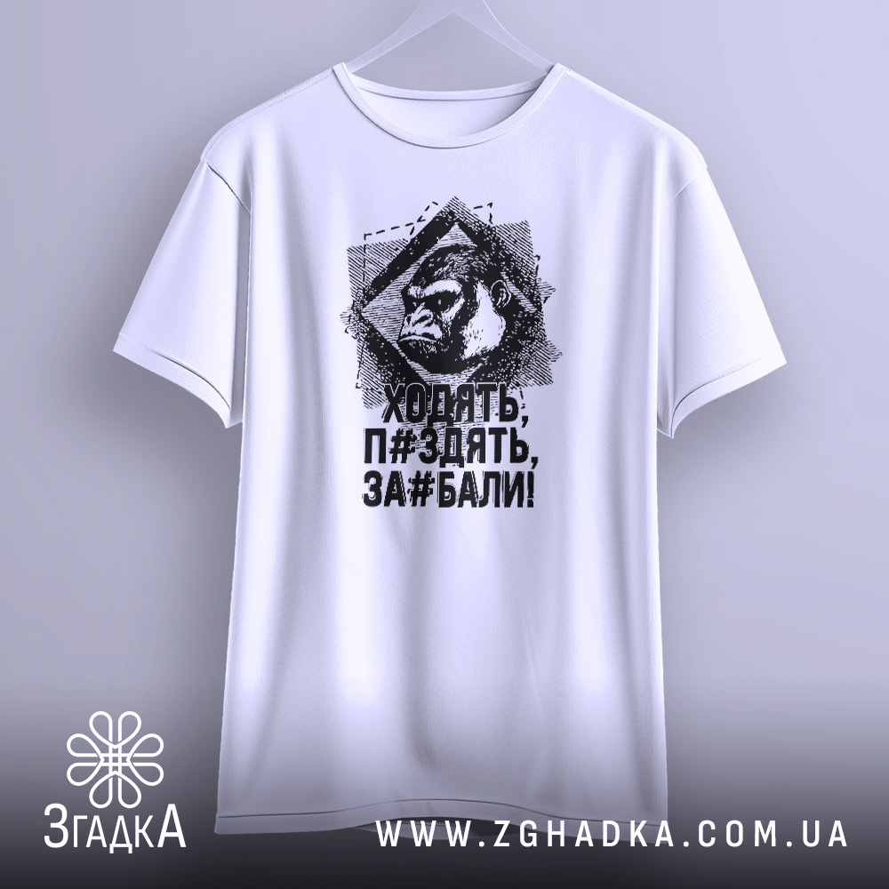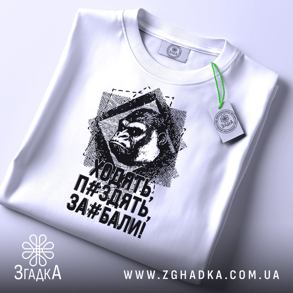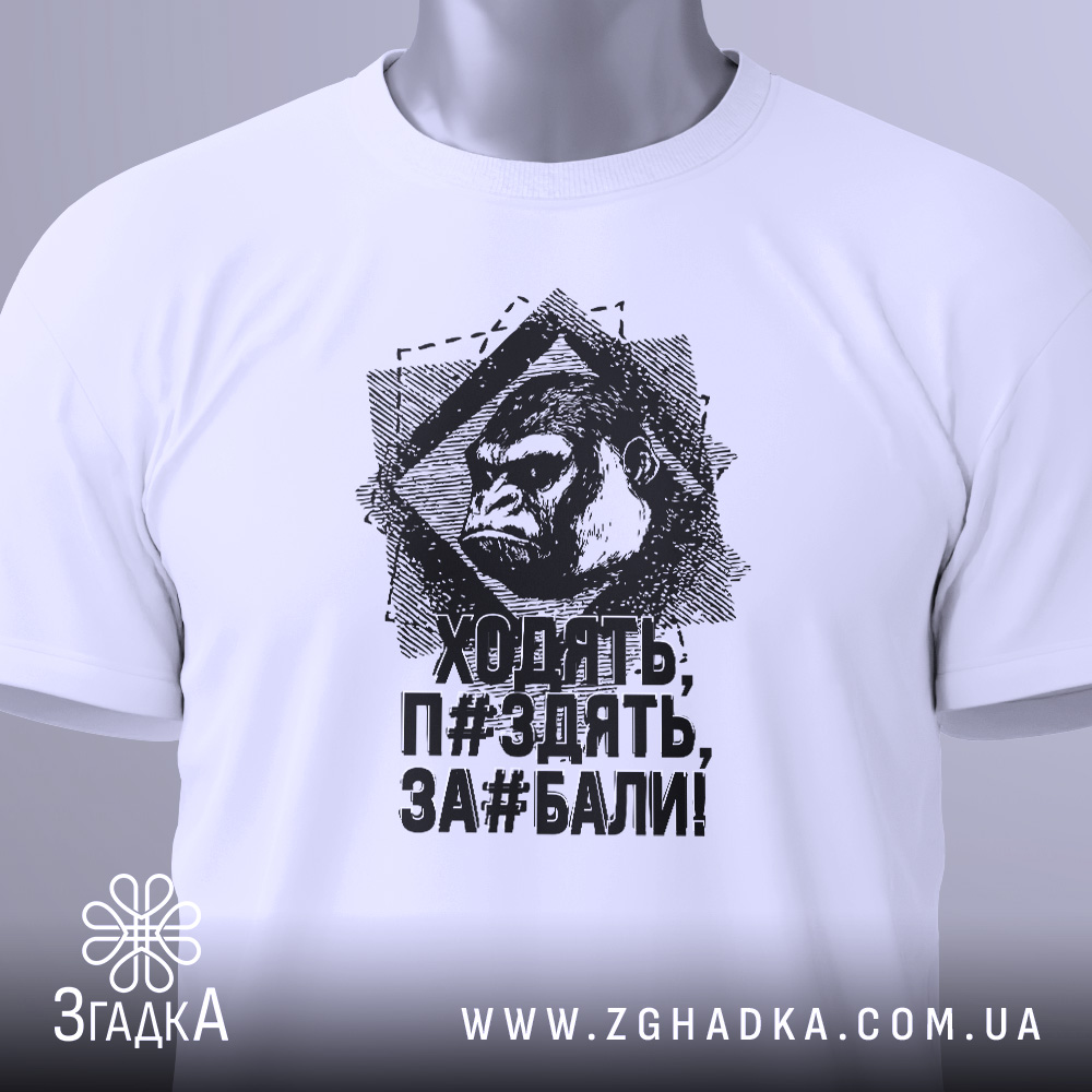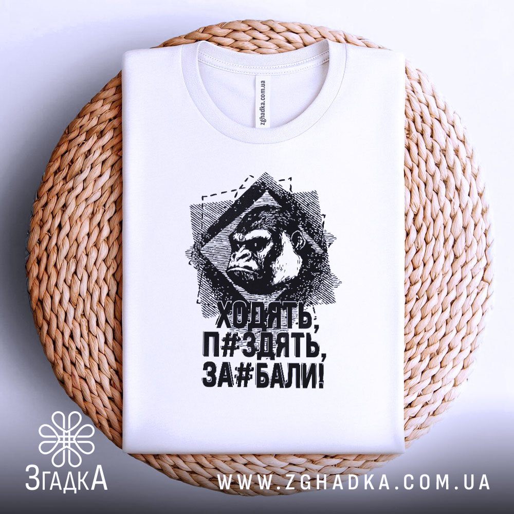 Футболка з принтом горили, що символізує силу та рішучість. Ідеальний вибір для тих, хто підтримує антинахабство.