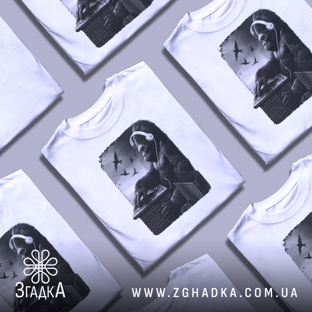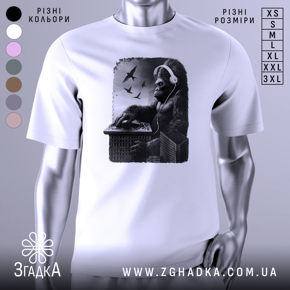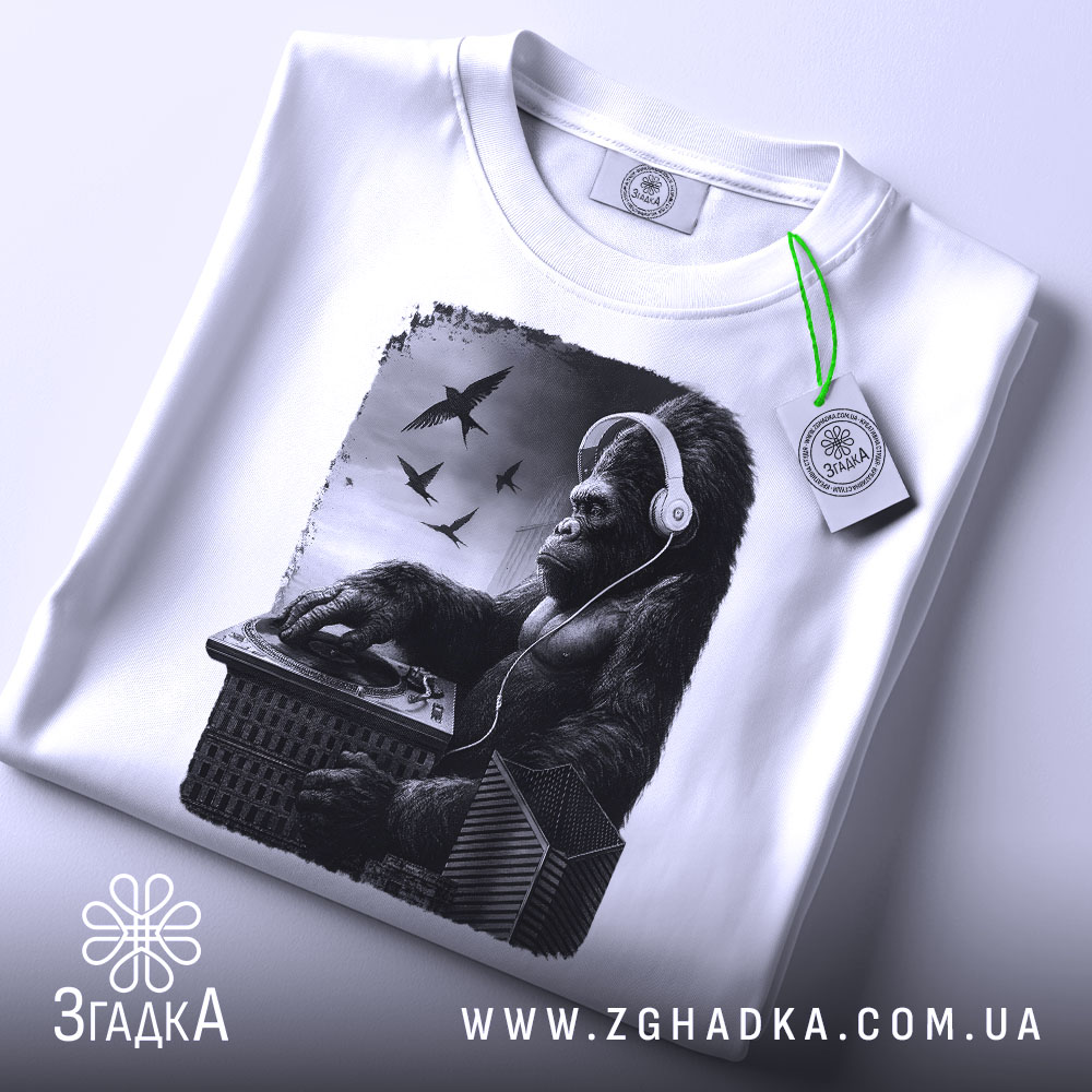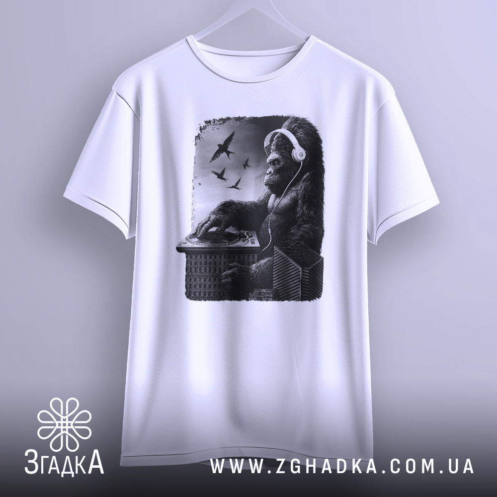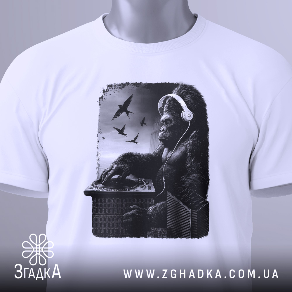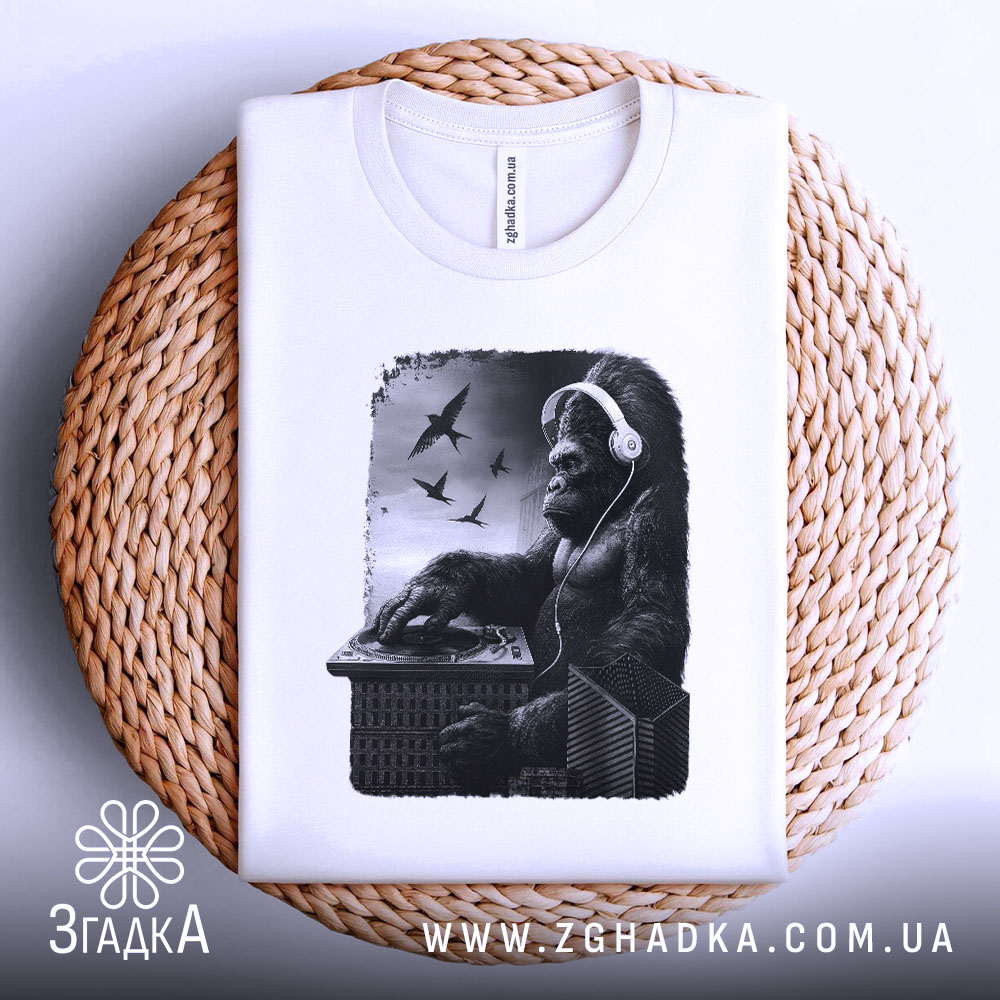 Футболка Горила Діджей – це стильний одяг з унікальним принтом. Ідеально підходить для любителів музики та активного способу життя.