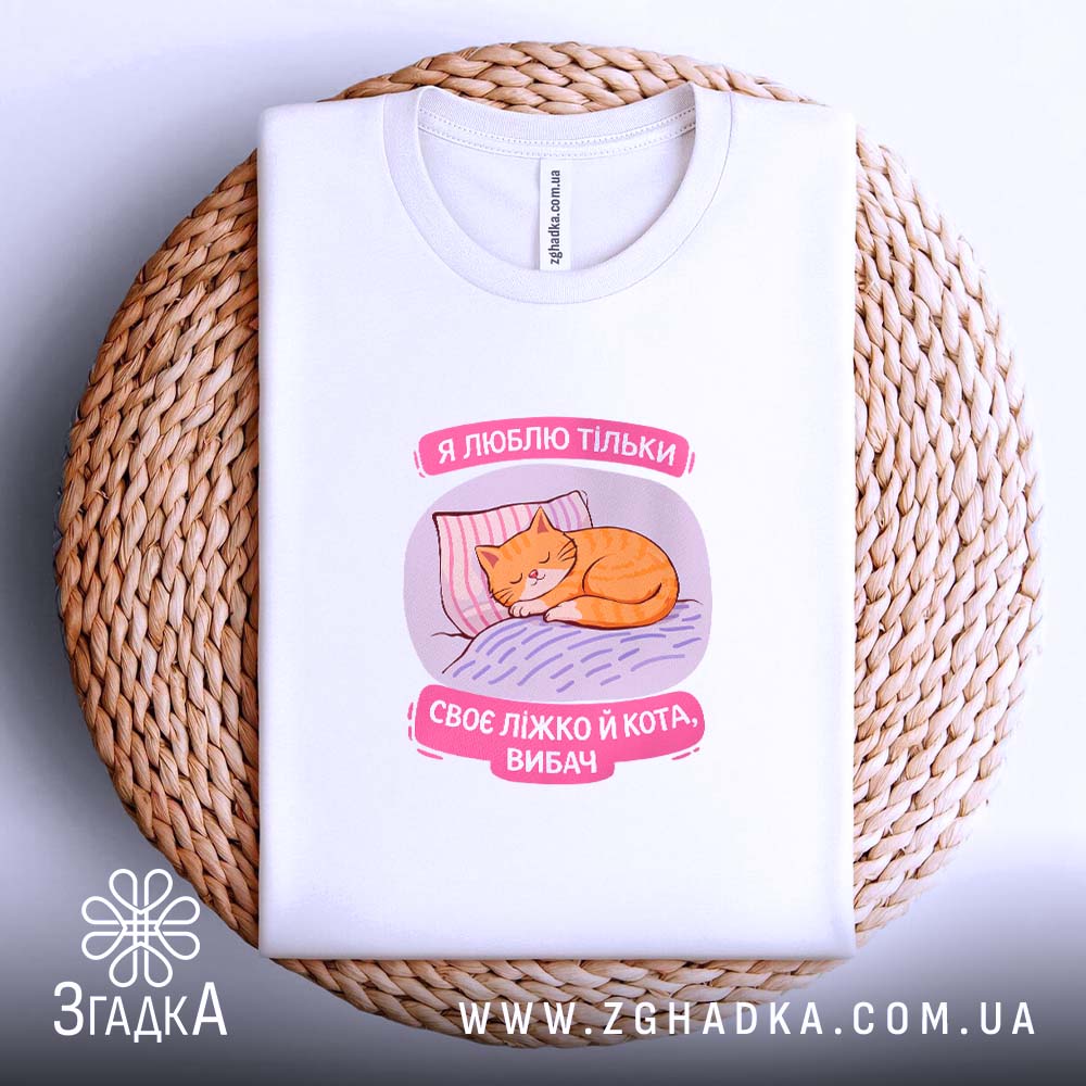 Футболка ‘я люблю тільки ліжко й кота’ – це стильний і комфортний вибір для кожного дня.