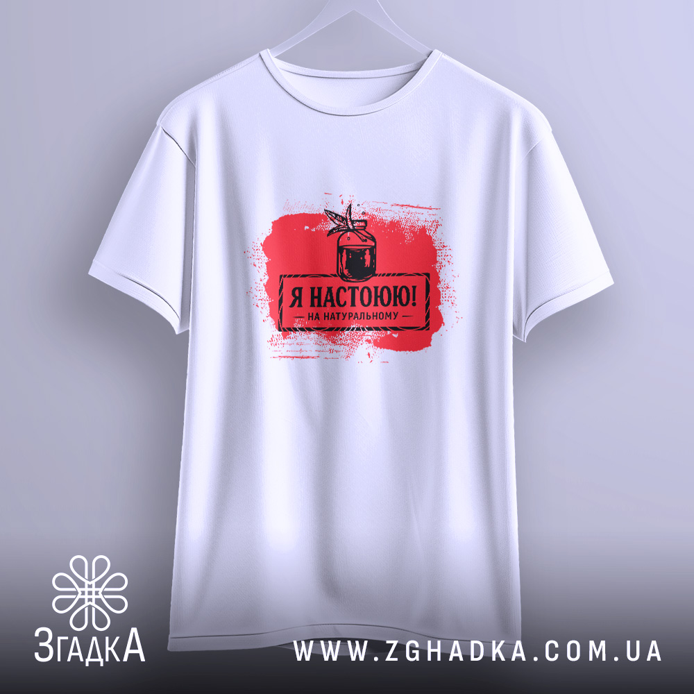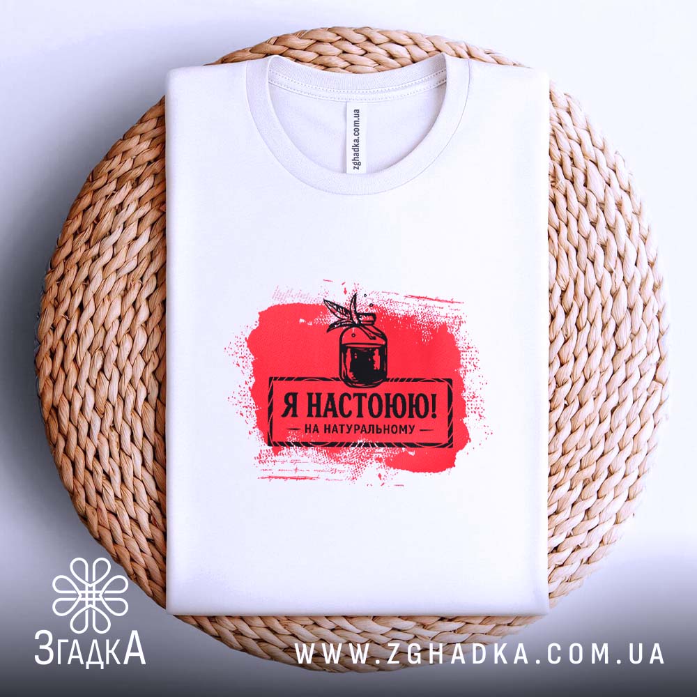 Футболка з яскравим принтом ‘Я настоюю на натуральному’. Ідеальний вибір для стильних людей.