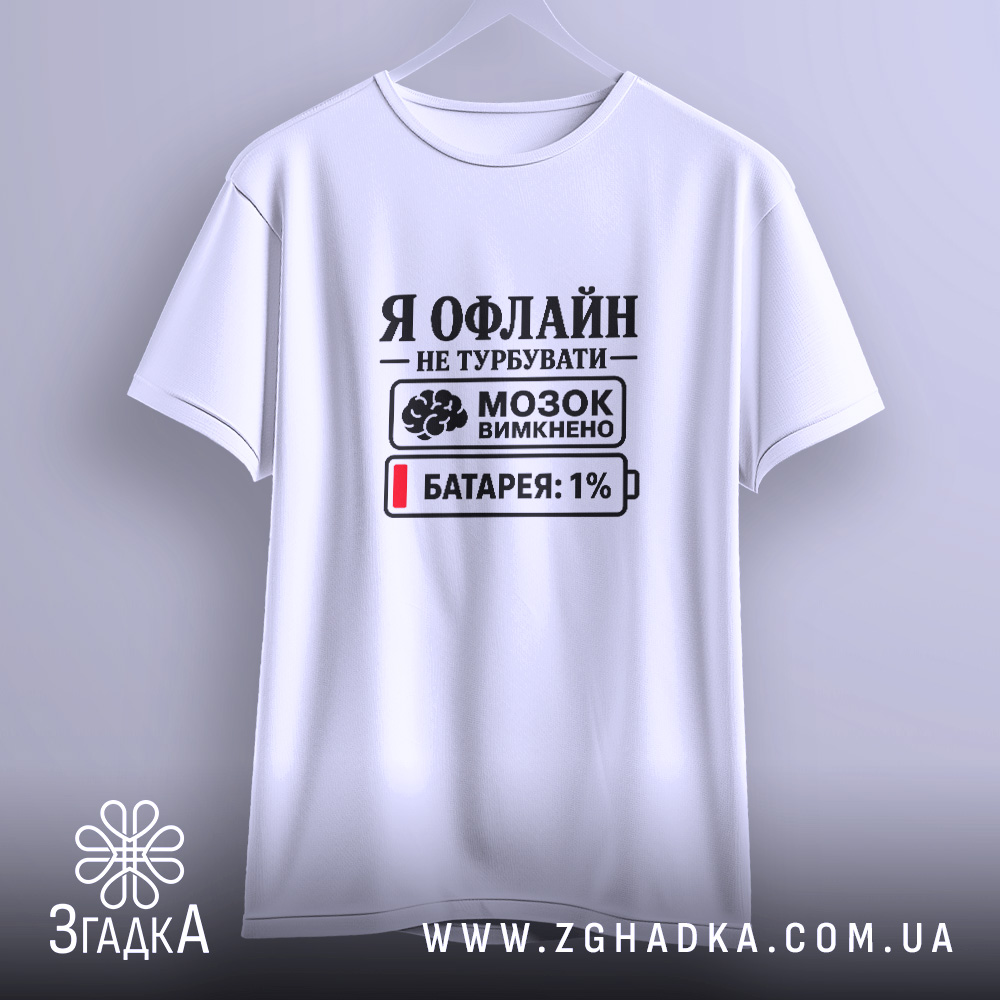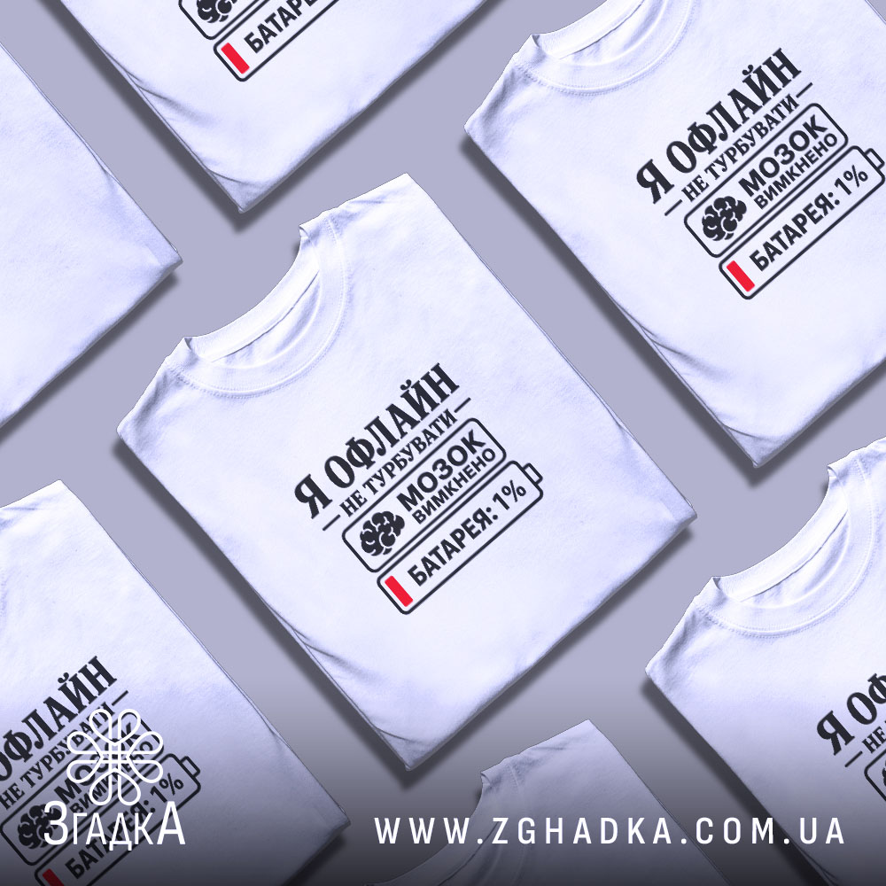 Футболка з принтом ‘Я офлайн не турбувати’ – це стиль і комфорт. Відмінний вибір для тих, хто цінує індивідуальність.