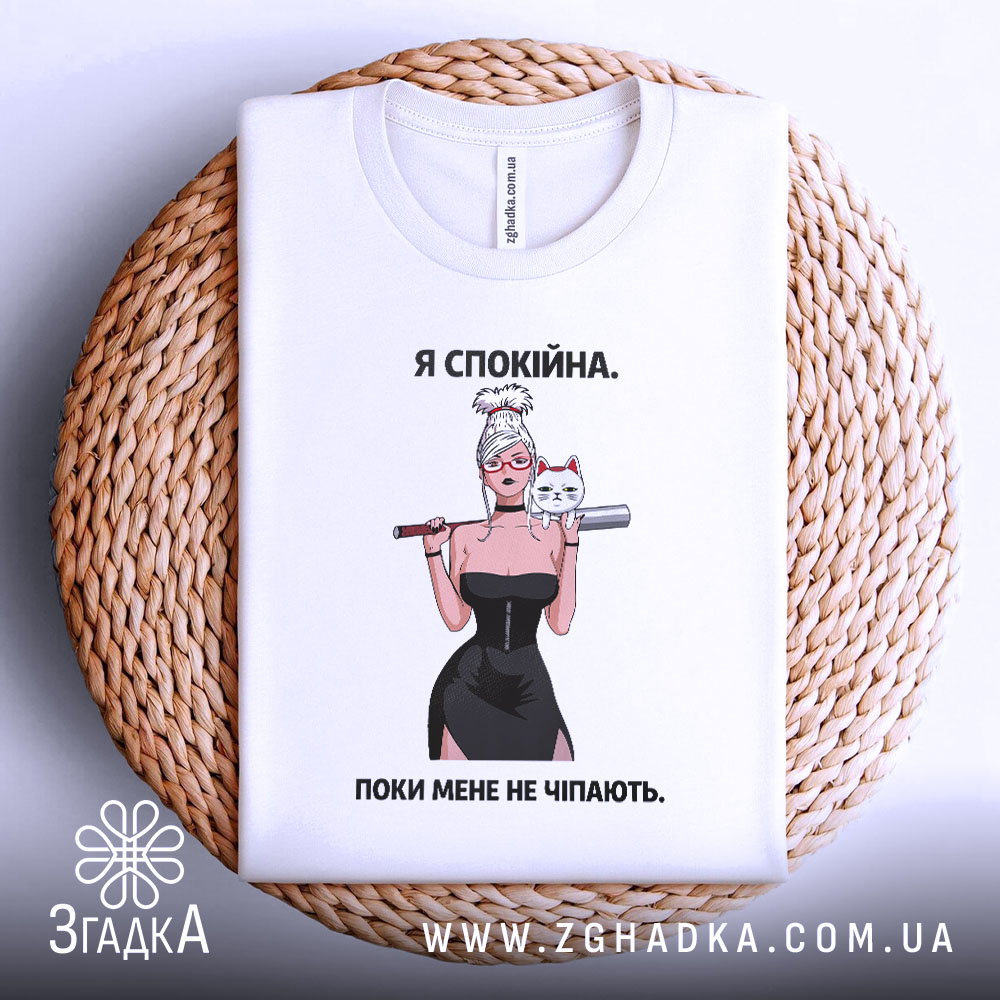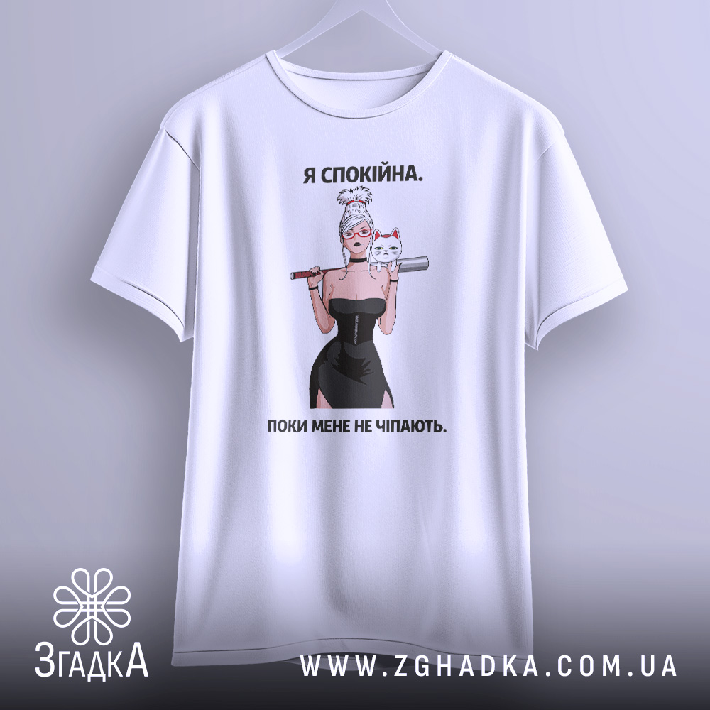 Стильна футболка я спокійна з унікальним принтом. Ідеальний вибір для комфортного повсякденного носіння.