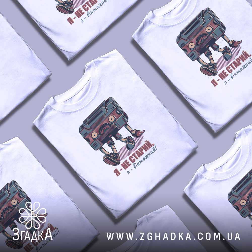 Футболка я вінтажний – стильна та комфортна річ для щоденного носіння. Відчуйте атмосферу ретро з нашим унікальним принтом.