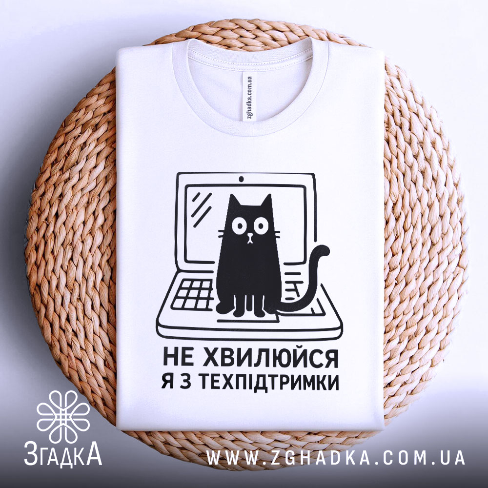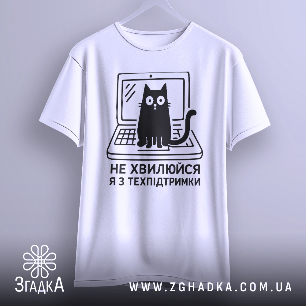 Футболка з принтом ‘я з техпідтримки’ – стильний вибір для любителів технологій. Ідеально підходить для подарунка чи повсякденного носіння.