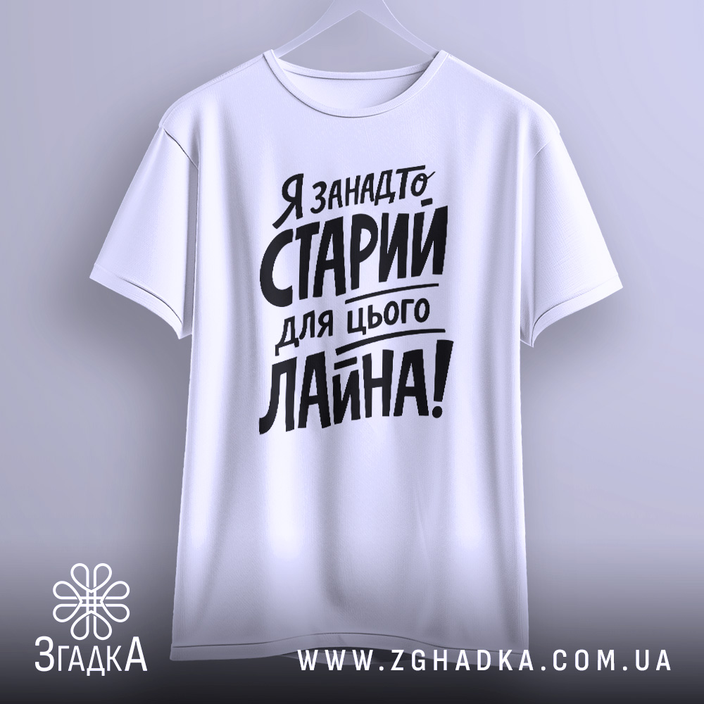 Футболка ‘Я занадто старий’ – це не просто одяг, а вираження вашої особистості. Принт символізує досвід і впевненість у собі, що робить її ідеальним вибором для тих, хто цінує свій вік і життєвий шлях.