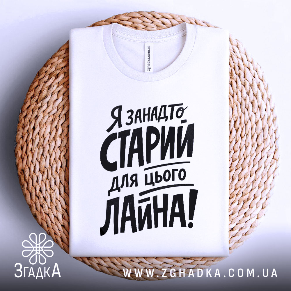 Футболка ‘Я занадто старий’ – це стильний вибір для тих, хто цінує свій вік. Вона поєднує комфорт і оригінальність.