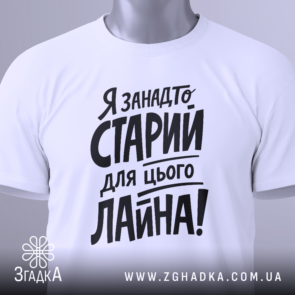 Футболка ‘Я занадто старий’ – це не просто одяг, а стильний вираз вашої особистості. Оберіть її, щоб підкреслити свою індивідуальність та насолоджуватися комфортом.