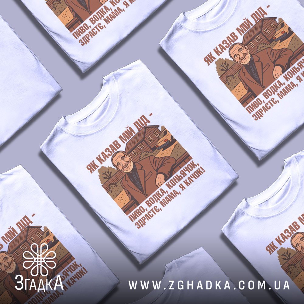 Ця футболка – не просто одяг, а символ мудрості поколінь. Принт з цитатою вашого діда надихає на роздуми про життя та сімейні цінності, роблячи її ідеальним вибором для тих, хто цінує традиції.