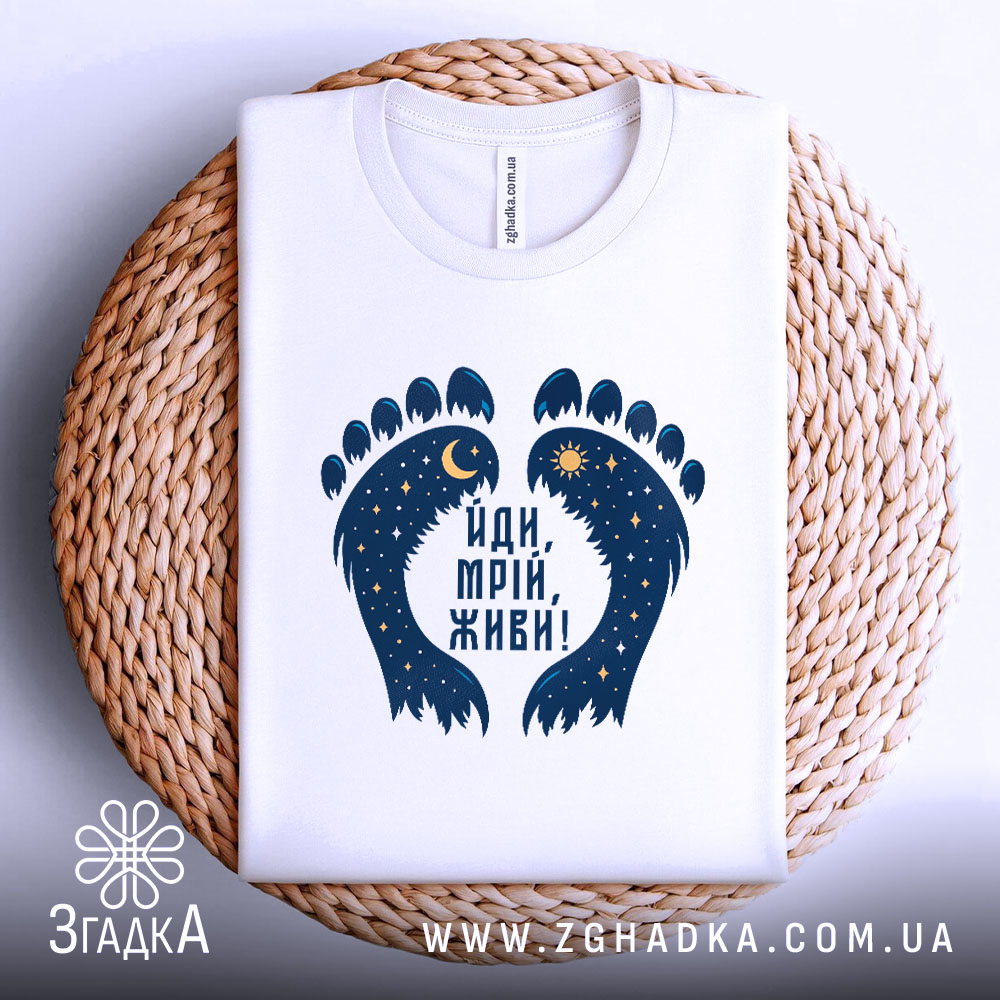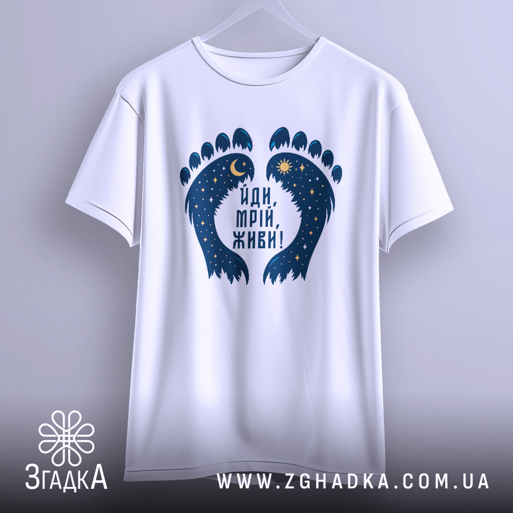 Футболка ‘Йди, мрій, живи’ – це не просто одяг, а стиль життя. Оберіть її, щоб підкреслити свою індивідуальність і надихнути інших.