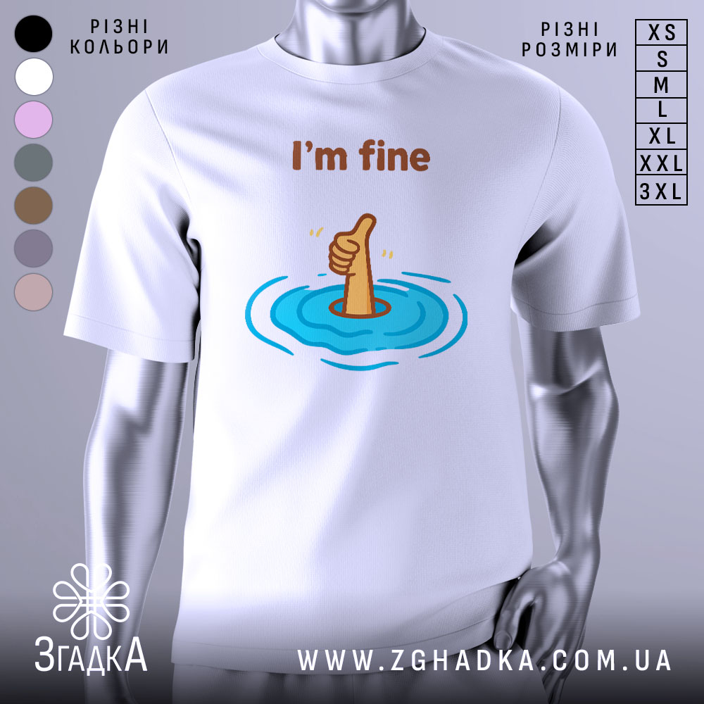 Футболка ‘I’m fine’ – це не просто одяг, а стильний аксесуар, який підкреслить вашу індивідуальність та позитивний настрій. Виберіть її для себе або як подарунок для близьких.