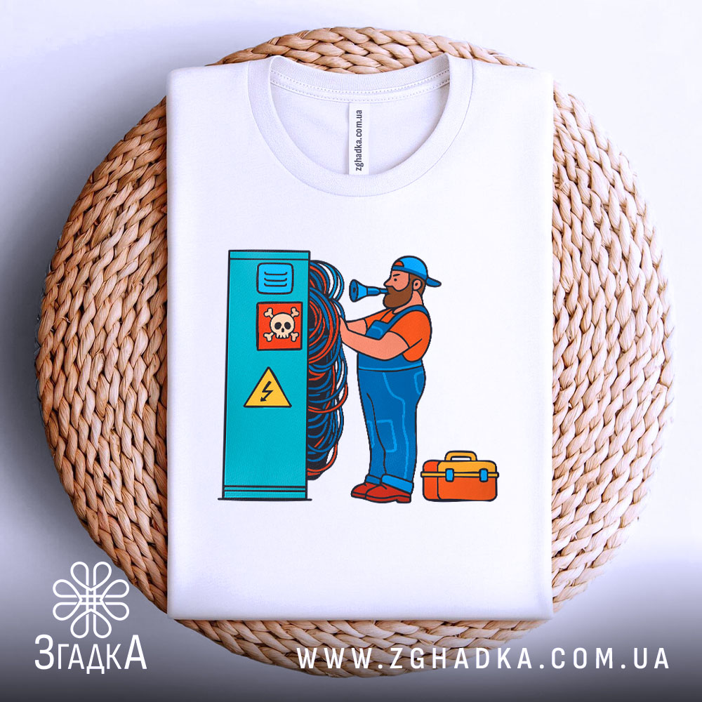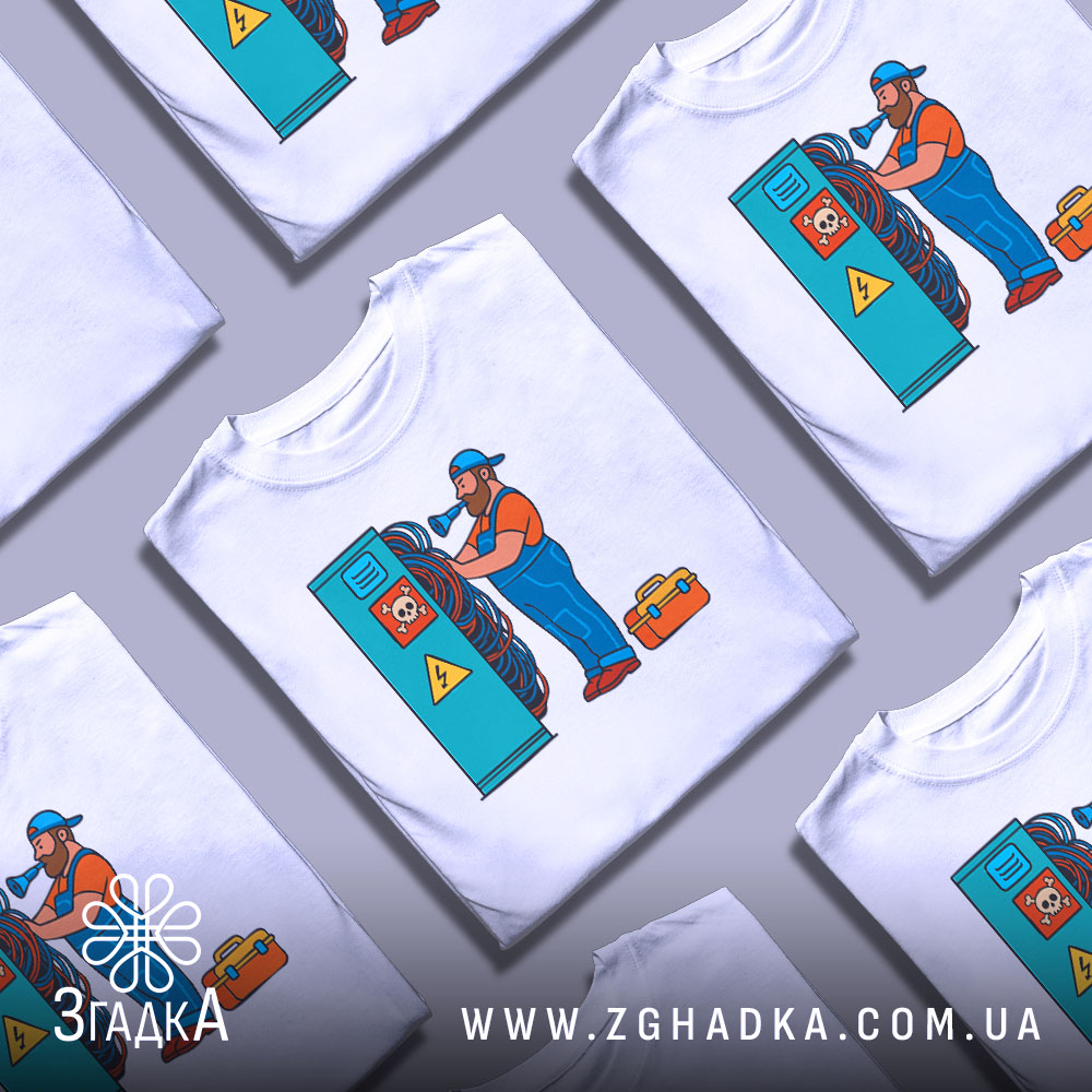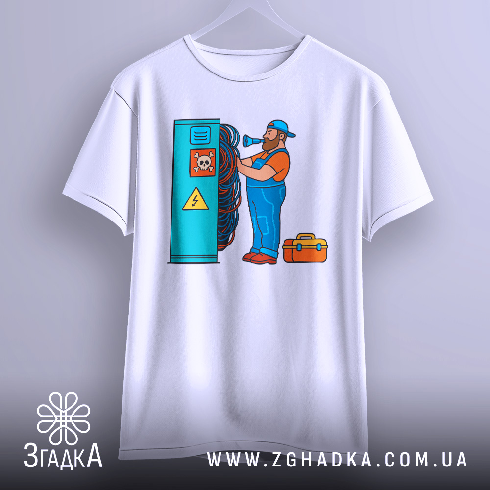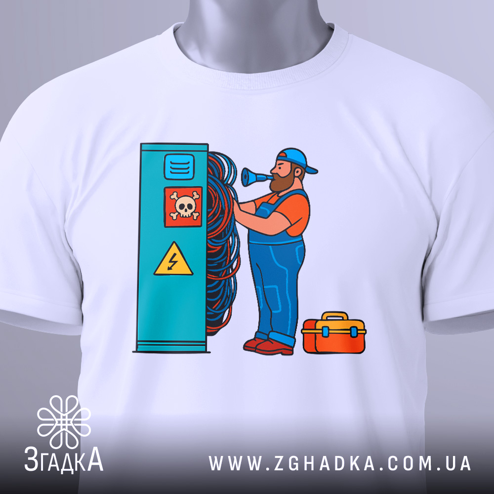 Футболка інженер електрик – ідеальний вибір для професіоналів. Стильний принт та комфортний матеріал роблять її незамінною у вашому гардеробі.