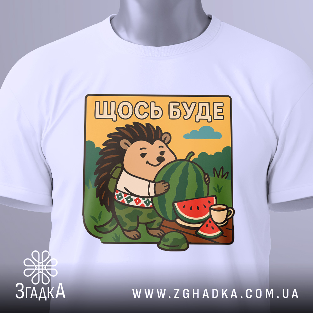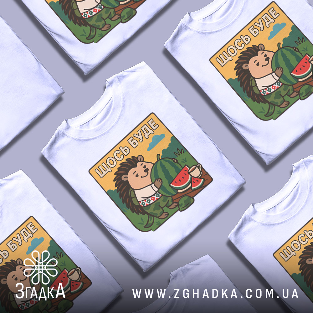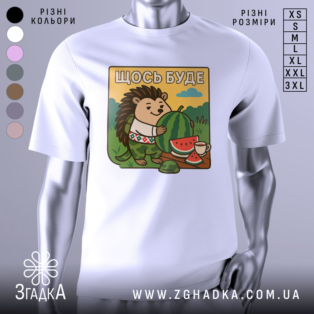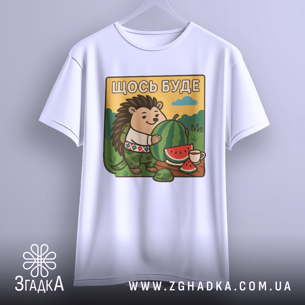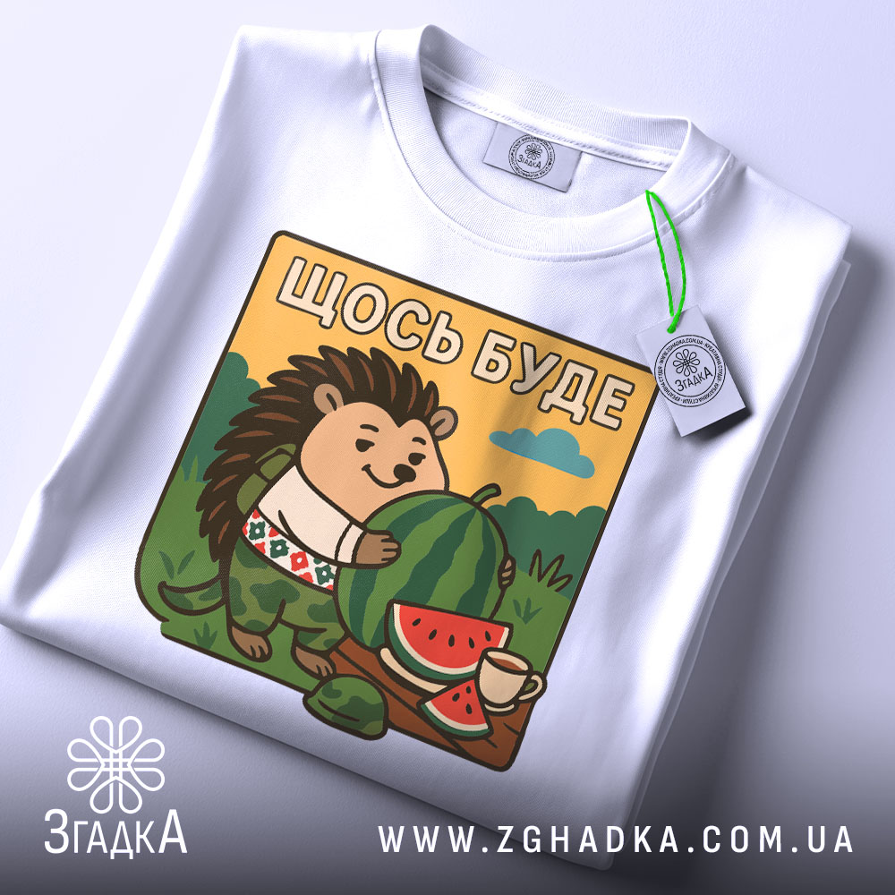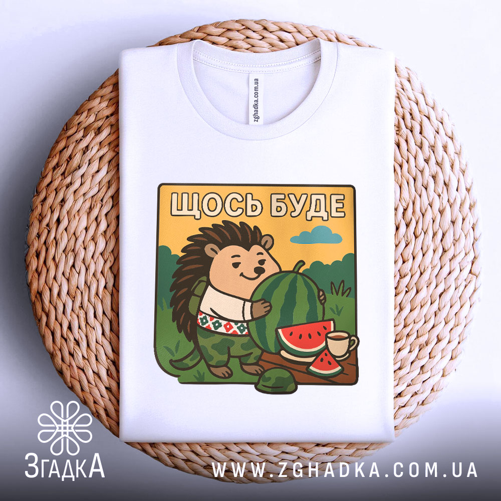 Футболка їжачок оптиміст з фразою “Щось буде”