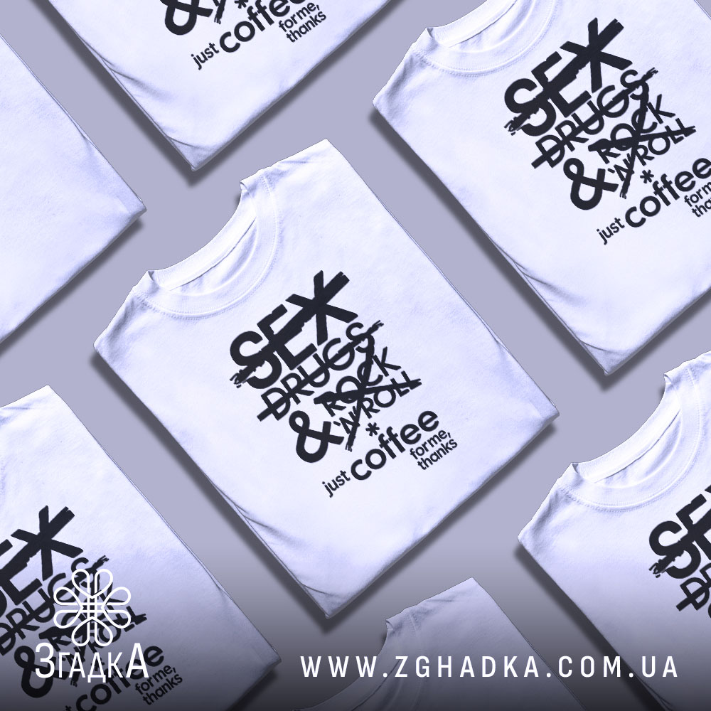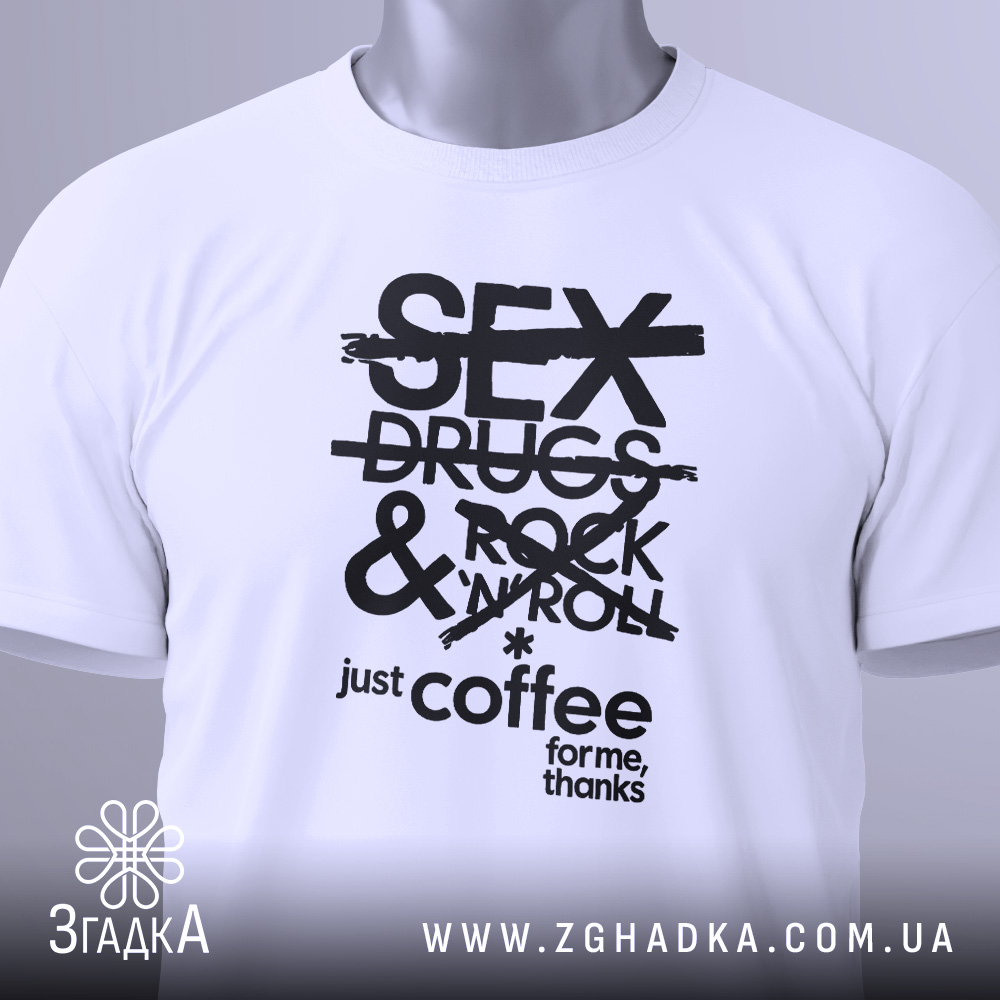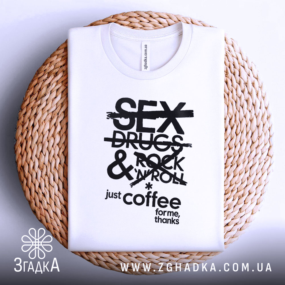 Ця футболка виготовлена з якісних матеріалів, що забезпечують комфорт під час носіння. Принт ‘just coffee’ говорить про вашу пристрасть до кави, роблячи цю річ ідеальною для повсякденного стилю.