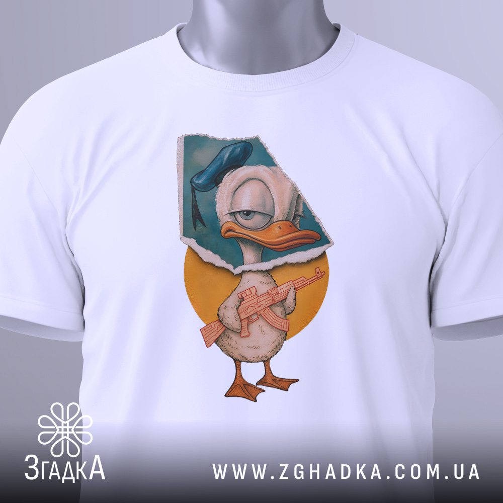 На принті зображений величний качур, який символізує силу та рішучість. Цей стильний дизайн викликає позитивні емоції та надихає на перемоги. Обирайте цю футболку, щоб підкреслити свій характер!