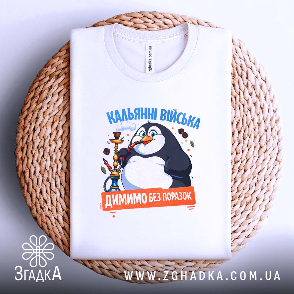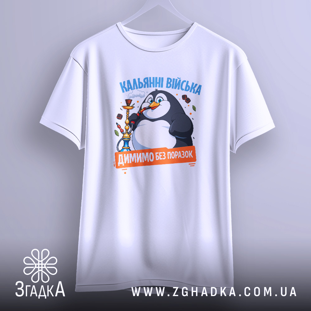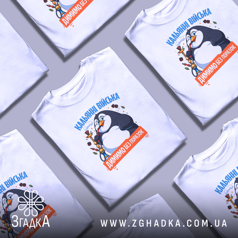 Яскрава футболка з принтом пінгвіна, що курить кальян. Ідеально підходить для молоді та любителів оригінального стилю.