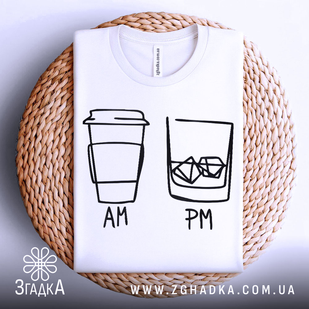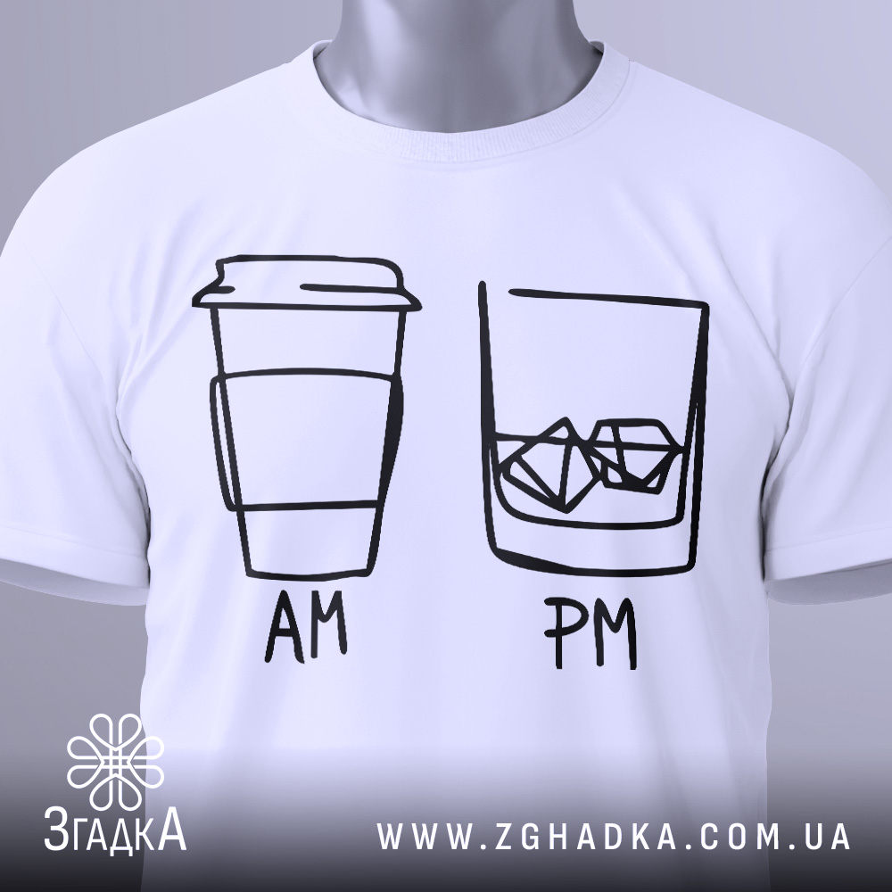 Ця футболка ідеально підходить для любителів кави та віскі, а також стане чудовим подарунком для друзів на свято чи просто для підняття настрою.