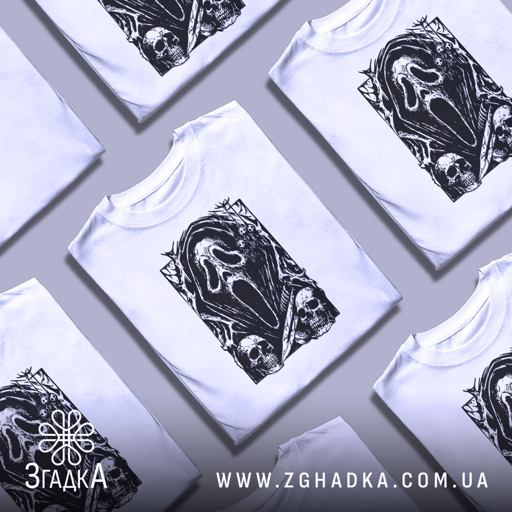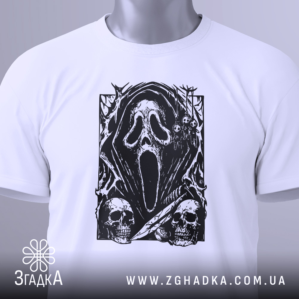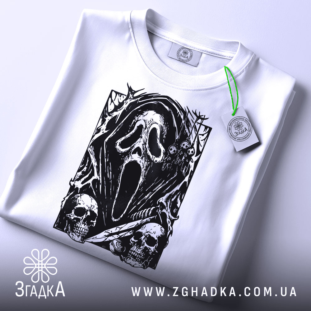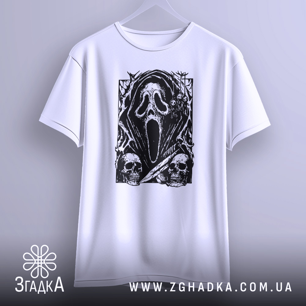 Футболка хорор скрім з унікальним принтом для сміливих. Ідеальний вибір для фанатів жахів та стильного повсякденного носіння.