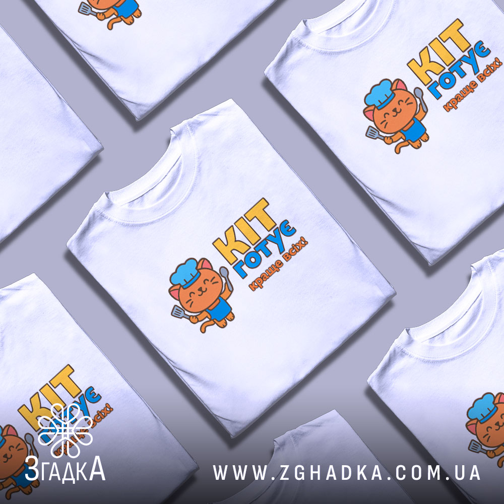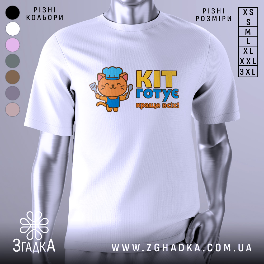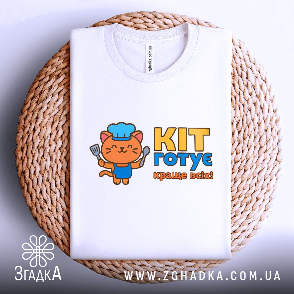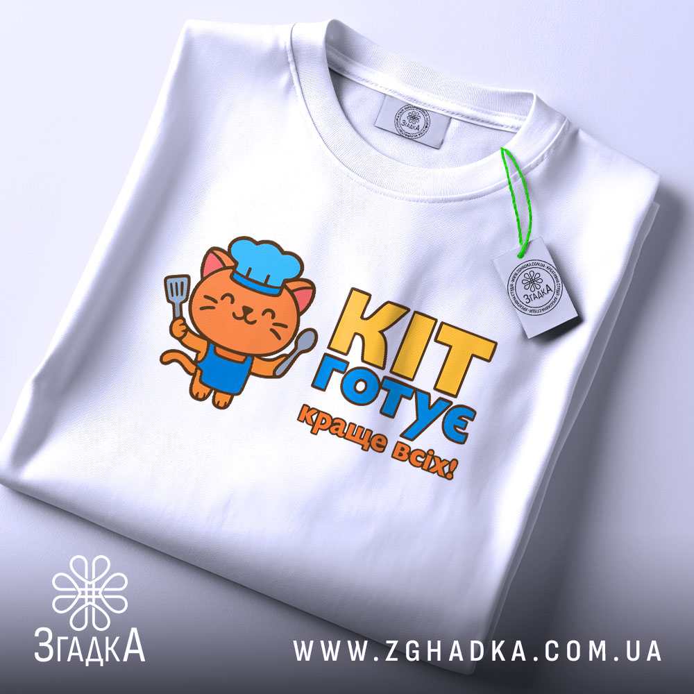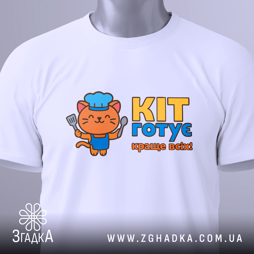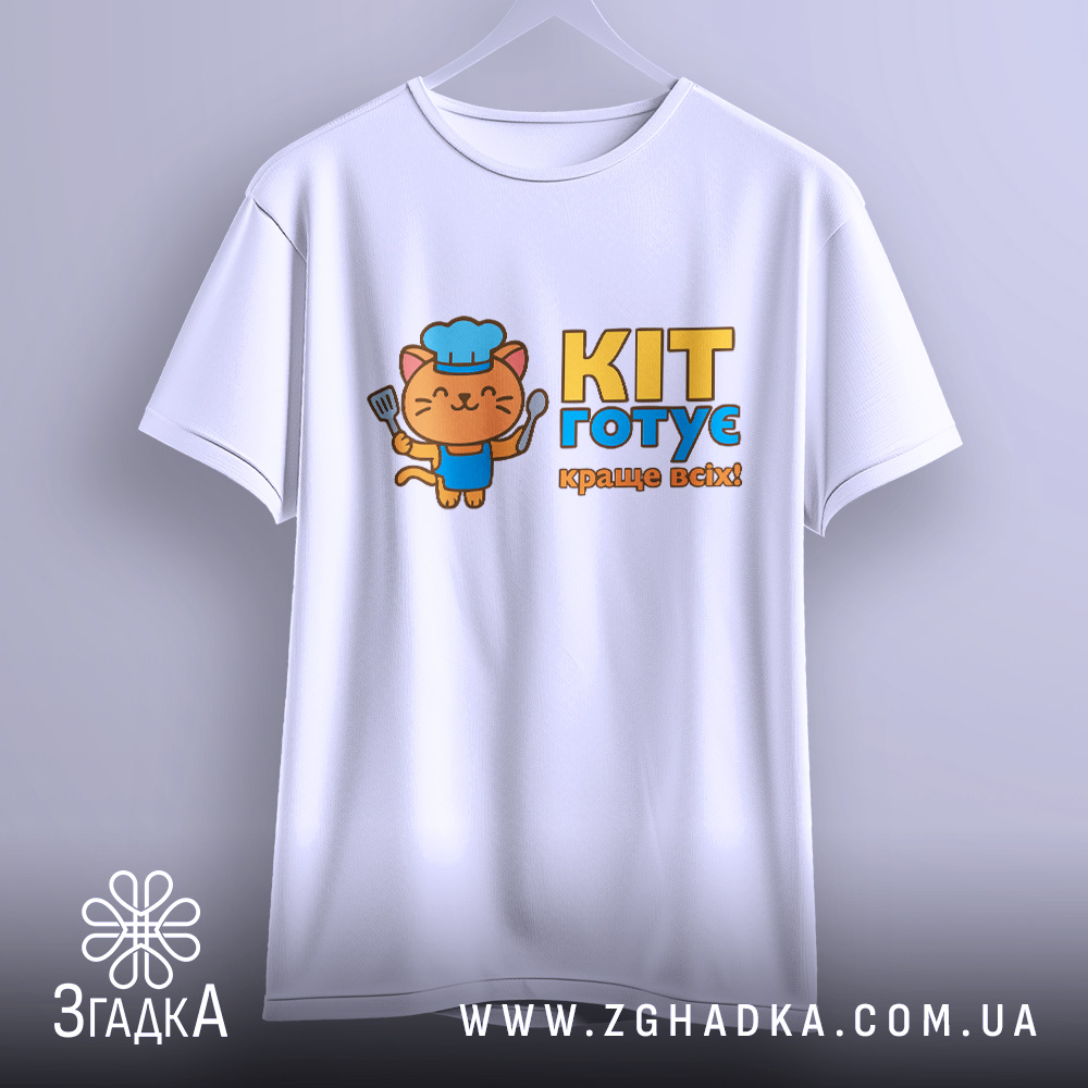 Футболка з милим принтом кота, що готує, стане чудовим доповненням до вашого стилю. Ідеально підходить для всіх любителів котів.