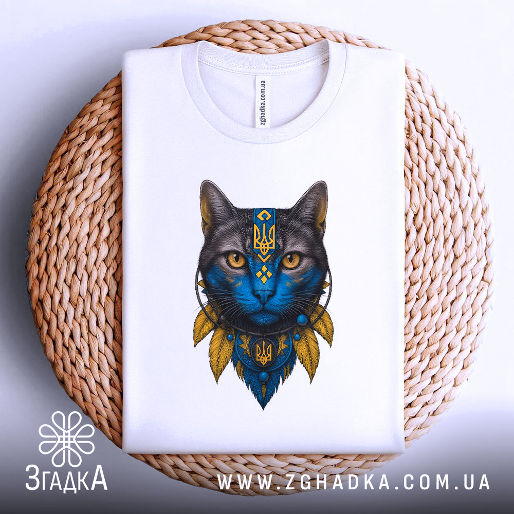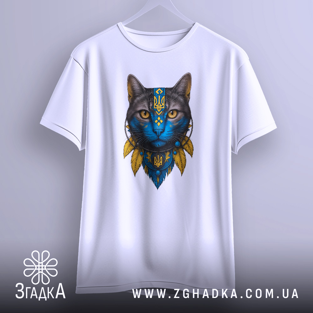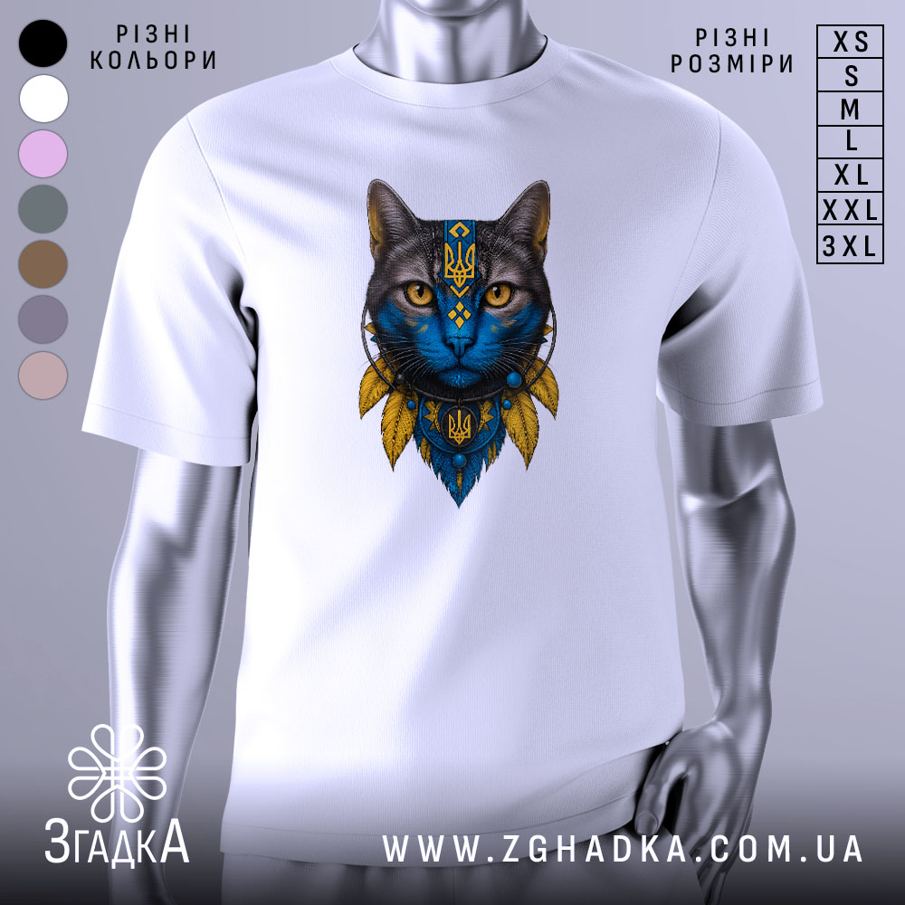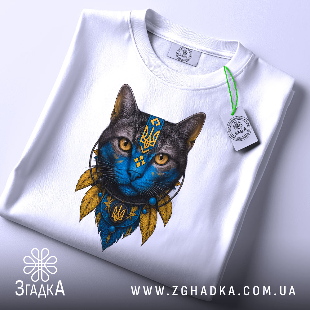 Ця футболка з принтом кота-патріота стане яскравим акцентом у вашому гардеробі. Вона передає емоції гордості та любові до своєї країни. Не пропустіть можливість виразити свою індивідуальність!