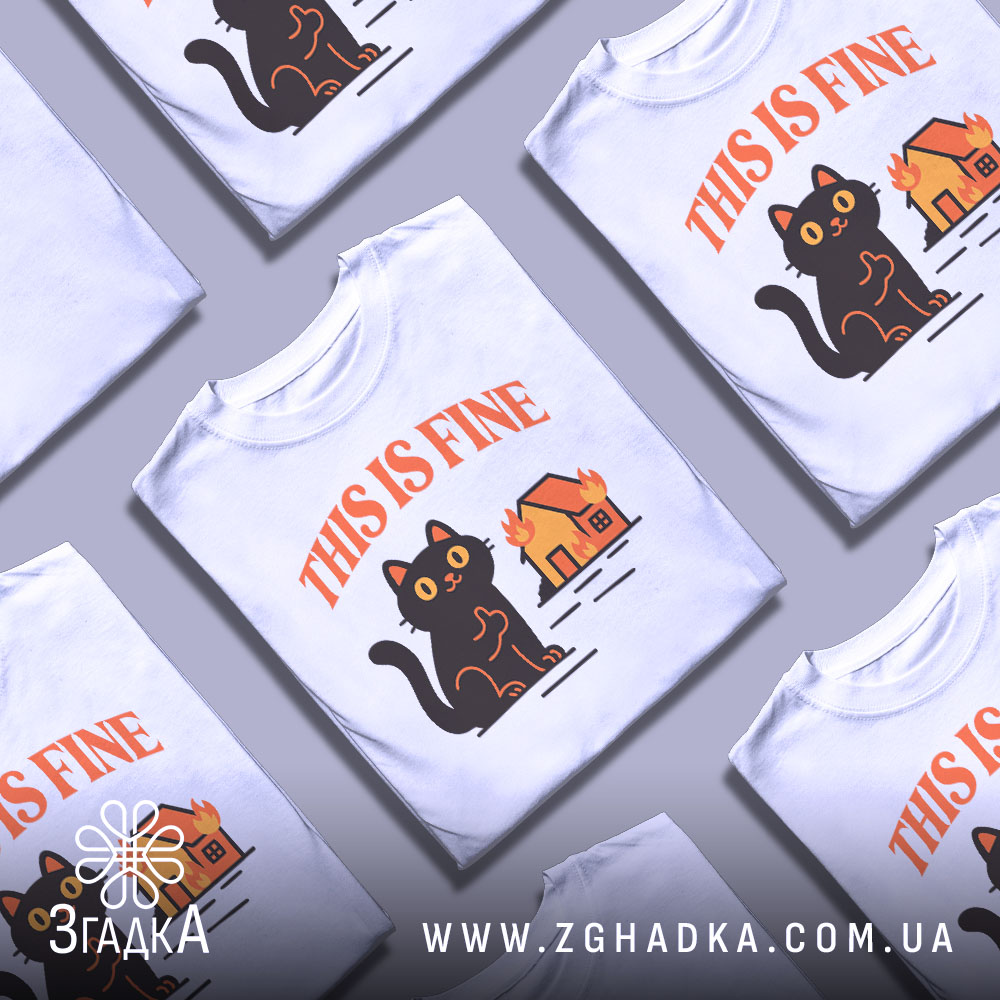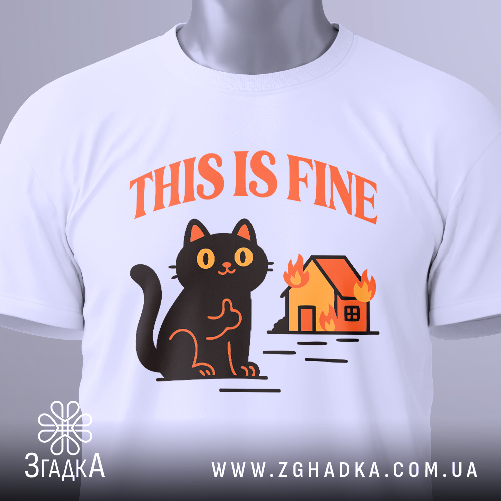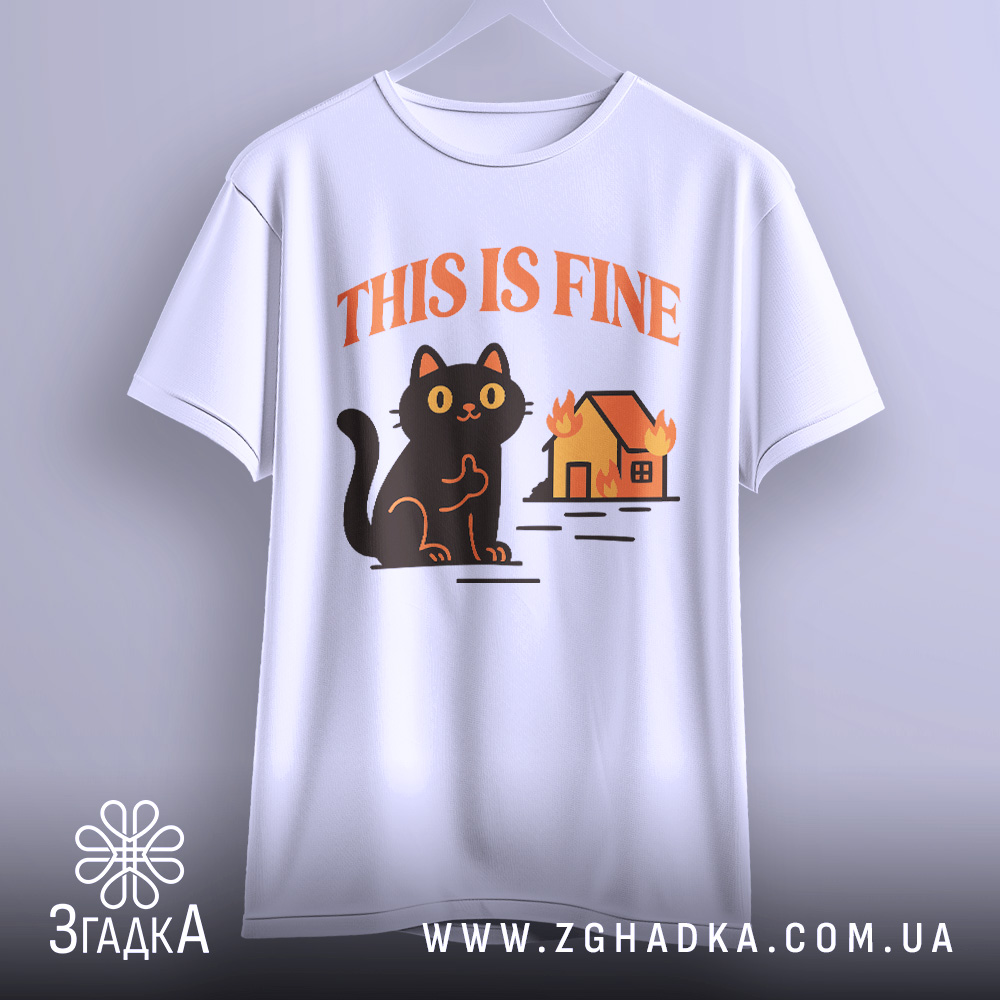 Футболка кіт this fine — чорний гумор у стилі