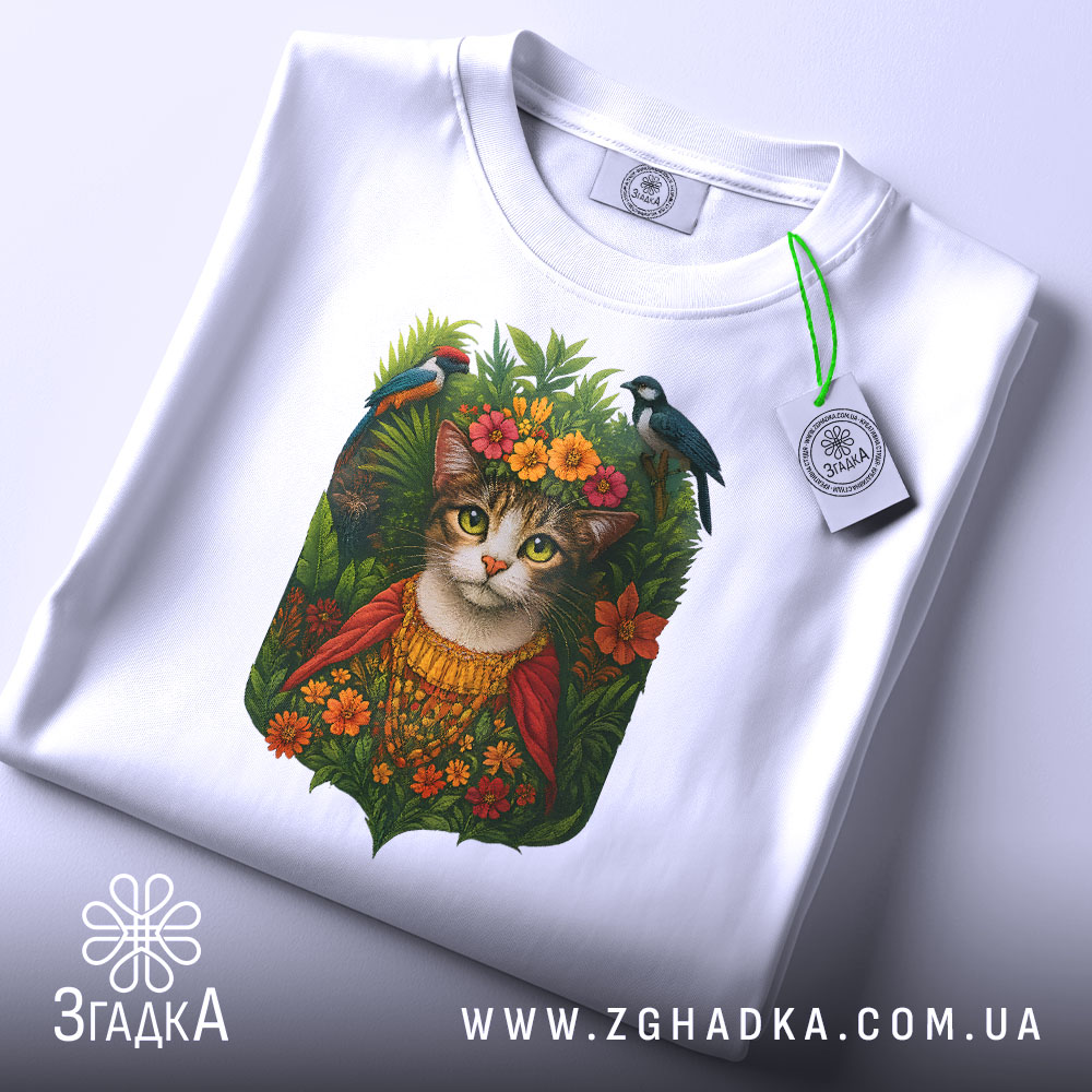 Футболка кіт у квітах – це не просто одяг, а вираження вашої любові до котів і природи. Обирайте стиль і комфорт разом з нами!