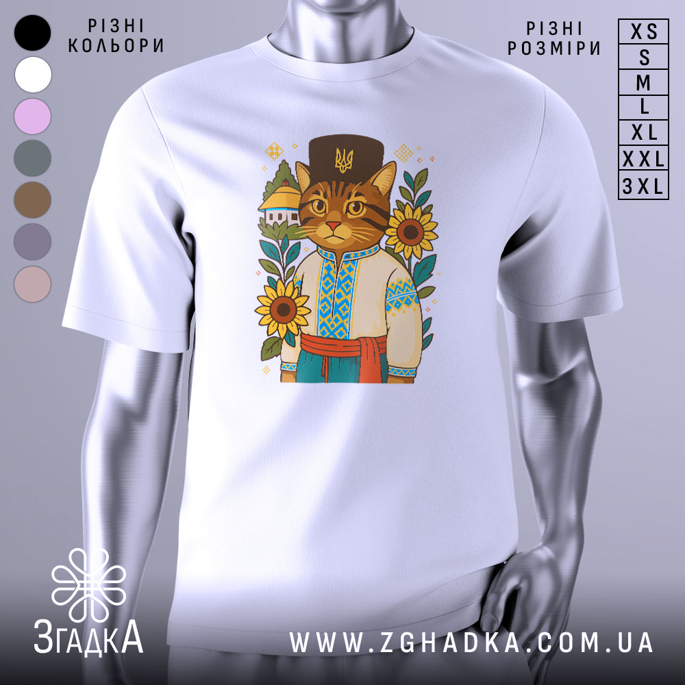 Футболка кіт у вишиванці — справжній герой