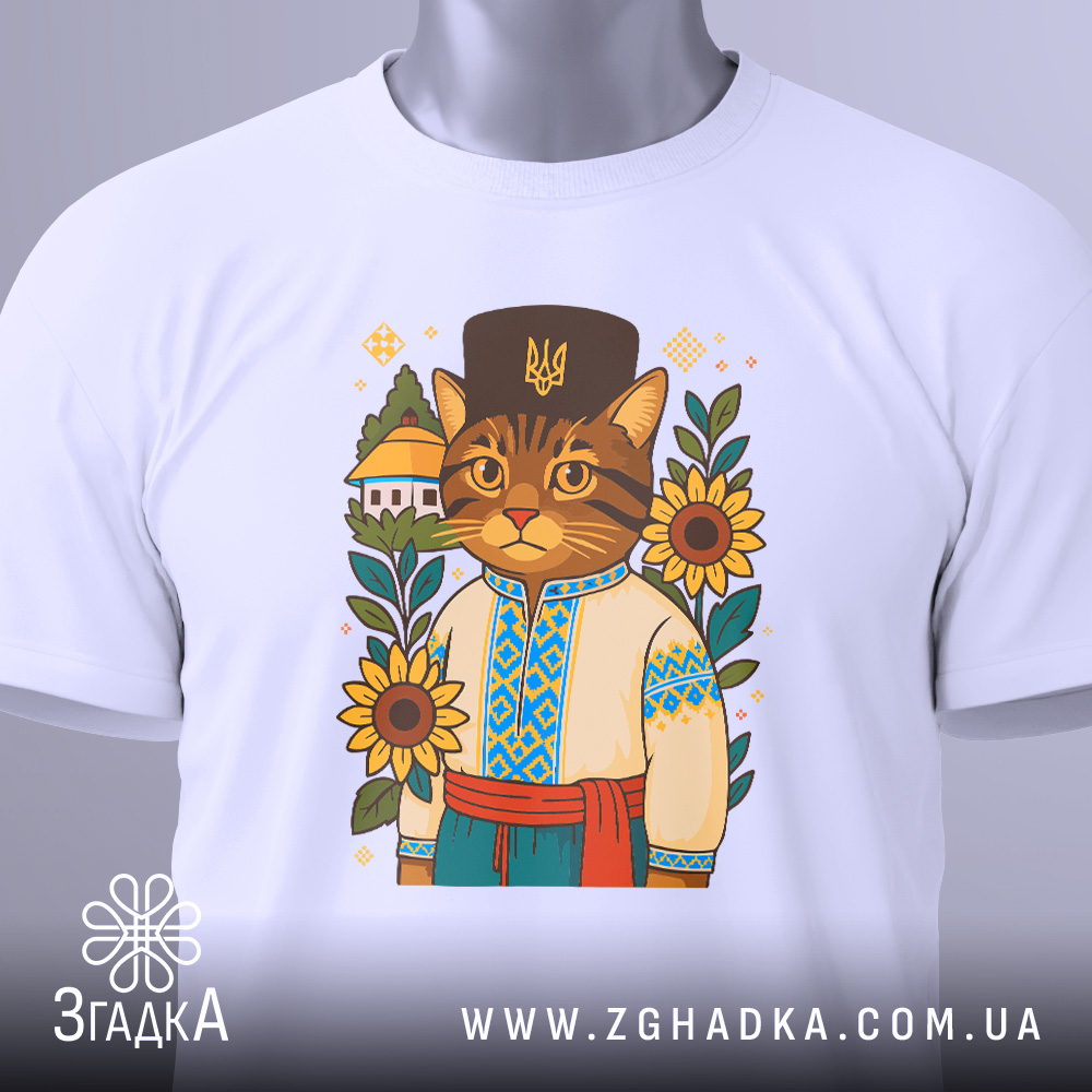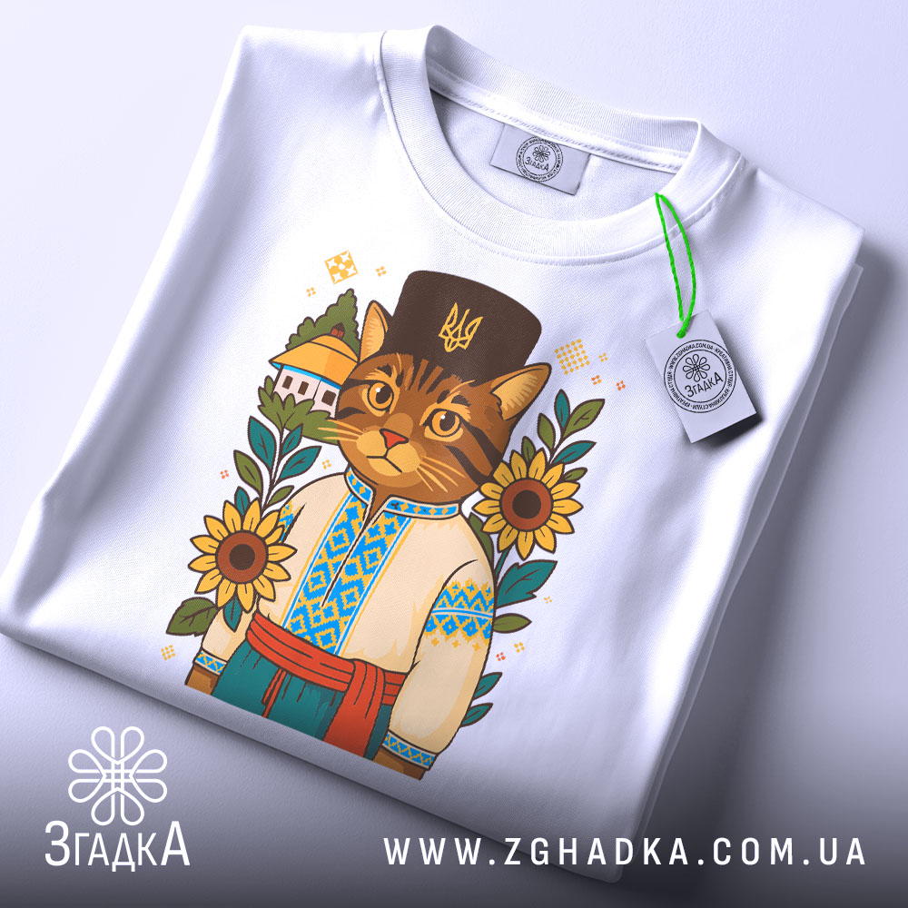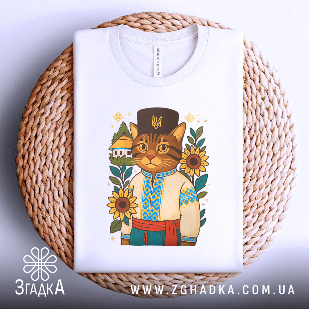 Футболка з принтом ‘кіт у вишиванці’ — це ідеальний вибір для тих, хто хоче поєднати стиль і комфорт. Не втрачайте можливість додати цю унікальну річ у свій гардероб.