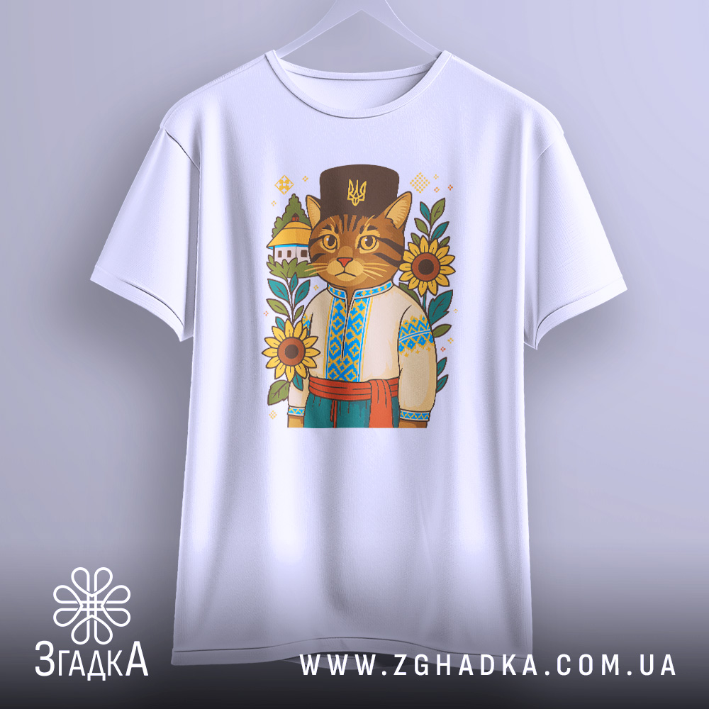 Футболка з принтом ‘кіт у вишиванці’ — це не просто одяг, а стильний акцент у вашому образі. Принт символізує українську культуру та любов до тварин.