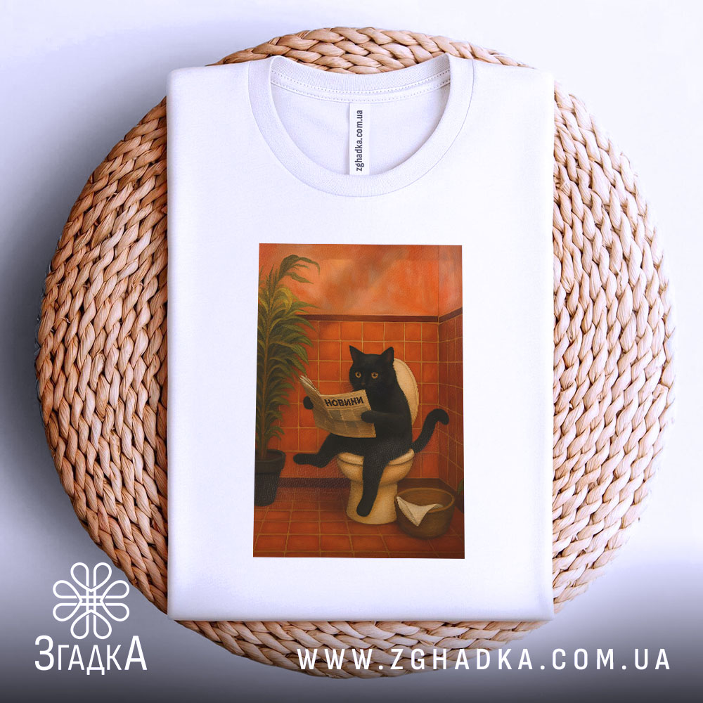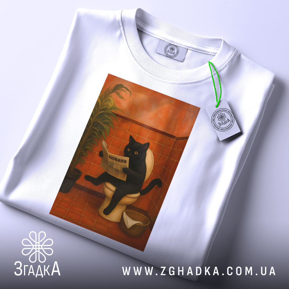 Ця футболка з принтом кота передає позитивний вайб та грайливий настрій. Вона стане чудовим доповненням до вашого гардеробу. Не втрачайте можливість виділитися!