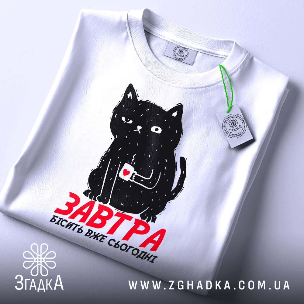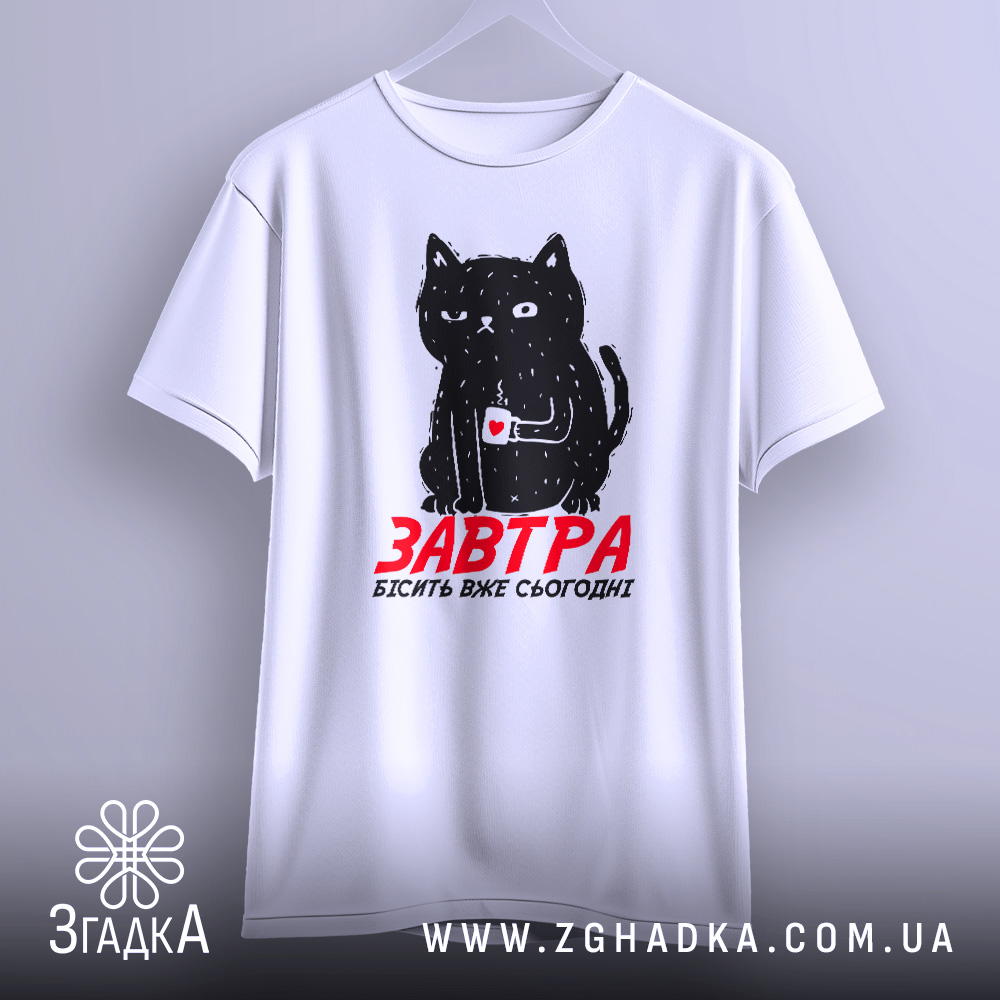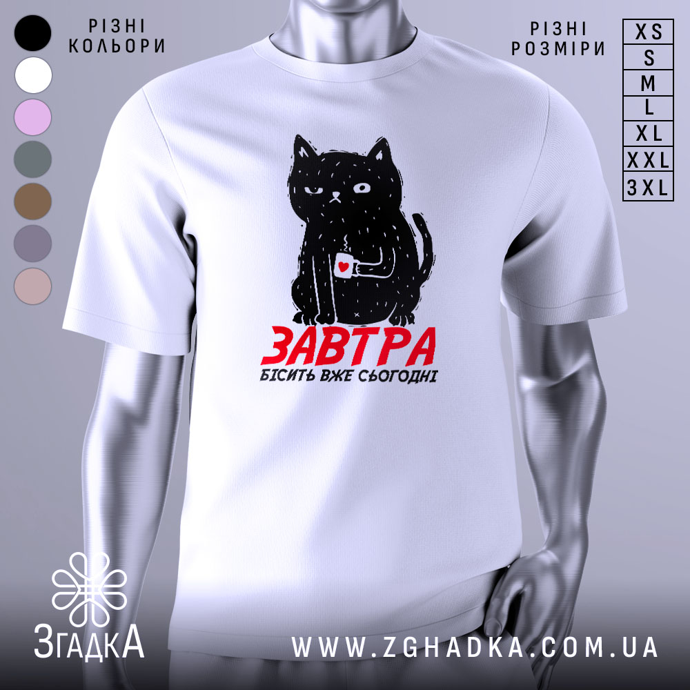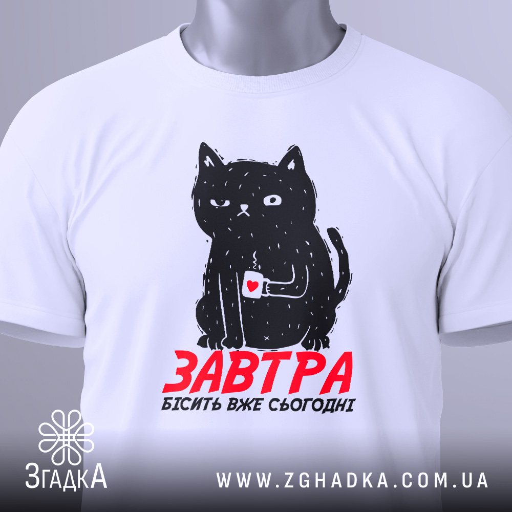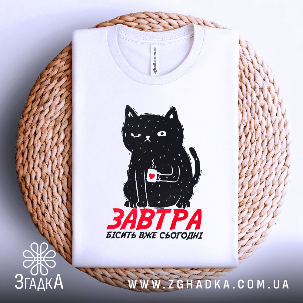Футболка кіт з написом “Завтра бісить уже сьогодні”
