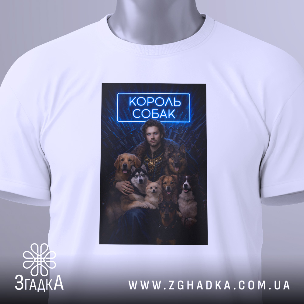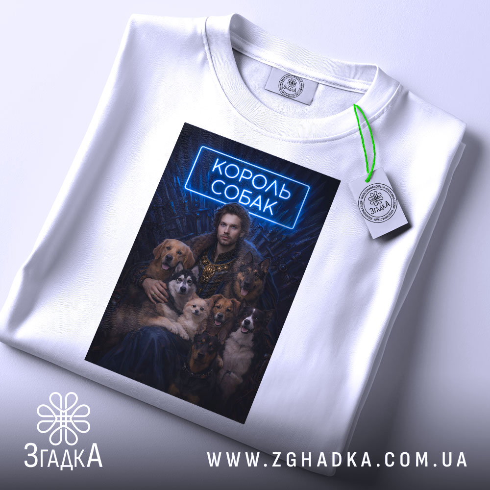 Футболка король собак – ідеальний вибір для любителів собак. Стильний дизайн і комфортна тканина роблять її незамінною в гардеробі.
