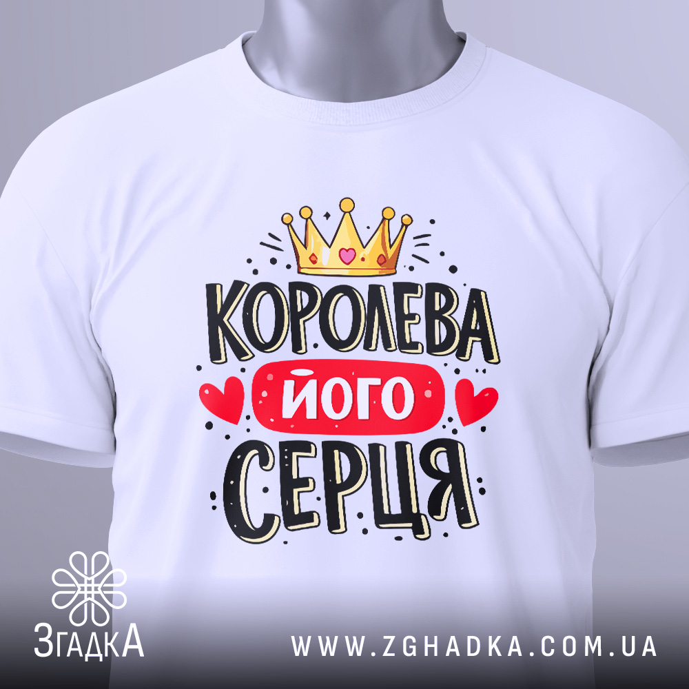 Футболка королева його серця — ідеальний подарунок для неї