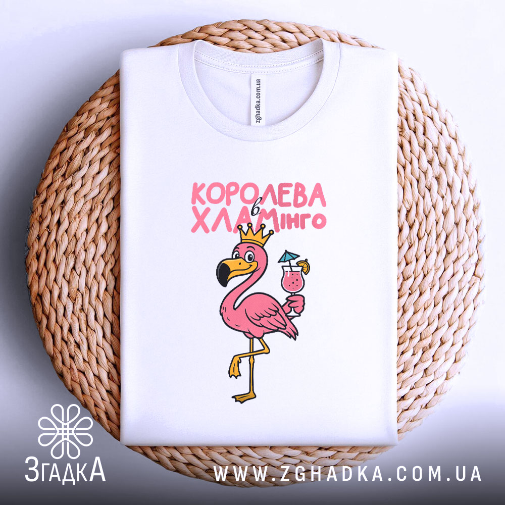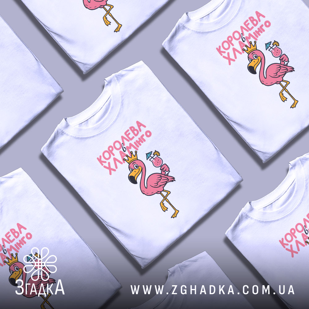 Футболка королева хламінго – це яскравий акцент у вашому гардеробі. Вона поєднує стиль, комфорт та оригінальність.