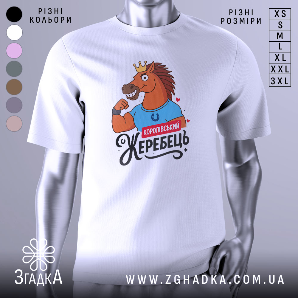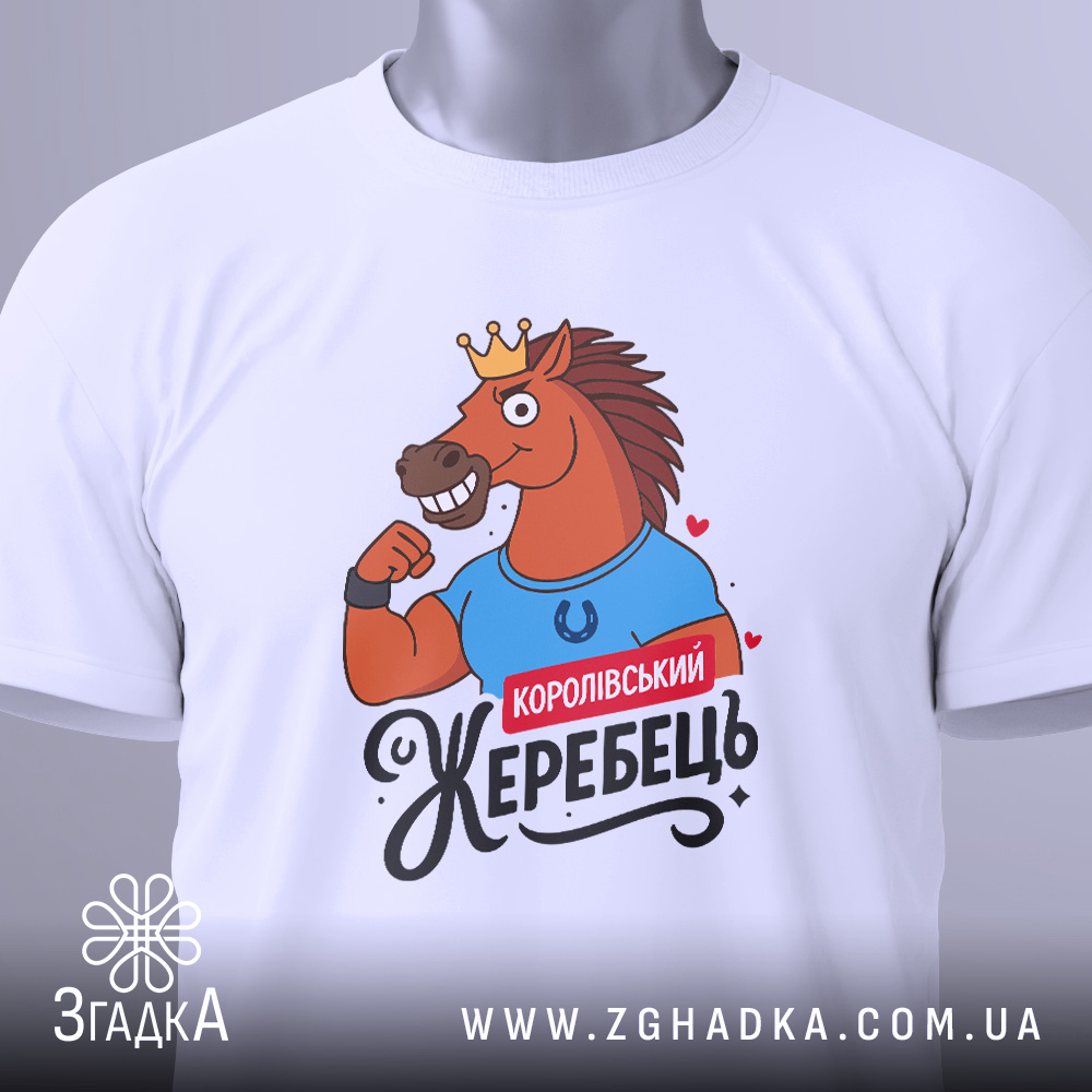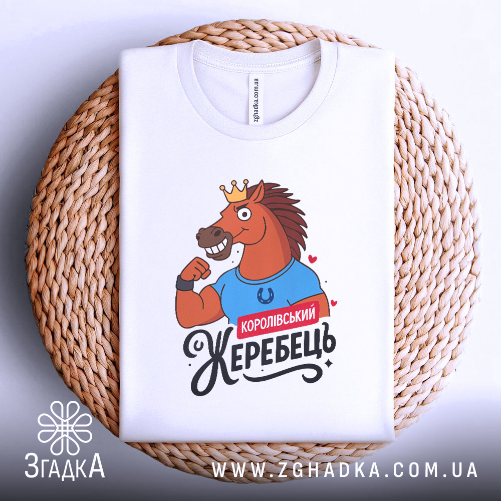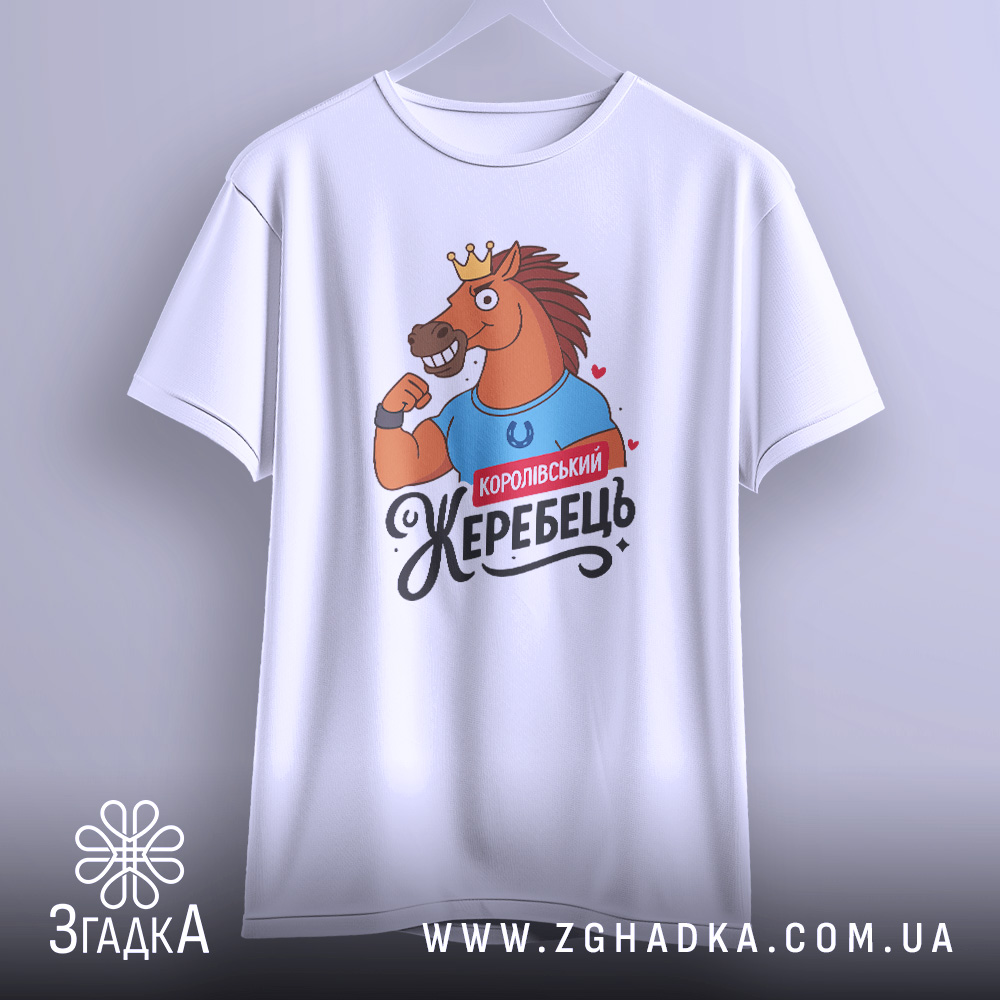 Футболка королівський жеребець – це стильний та комфортний вибір для будь-якого гардеробу. Принт з жеребцем надихає на нові досягнення.