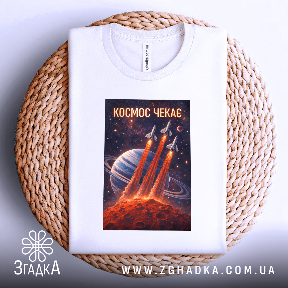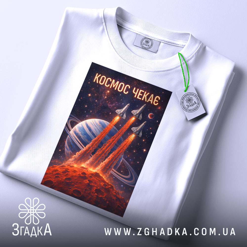 Футболка космос чекає – це не просто одяг, а стильний аксесуар, який підкреслить вашу індивідуальність та любов до космосу. Не пропустіть можливість додати цю унікальну річ до свого гардеробу.