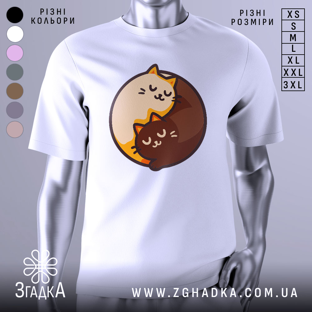 Ця футболка з котячим інь-янем – ідеальний вибір для всіх, хто цінує комфорт та оригінальність. Принт символізує гармонію, а також любов до котів, що робить цю річ не лише модною, а й значущою.