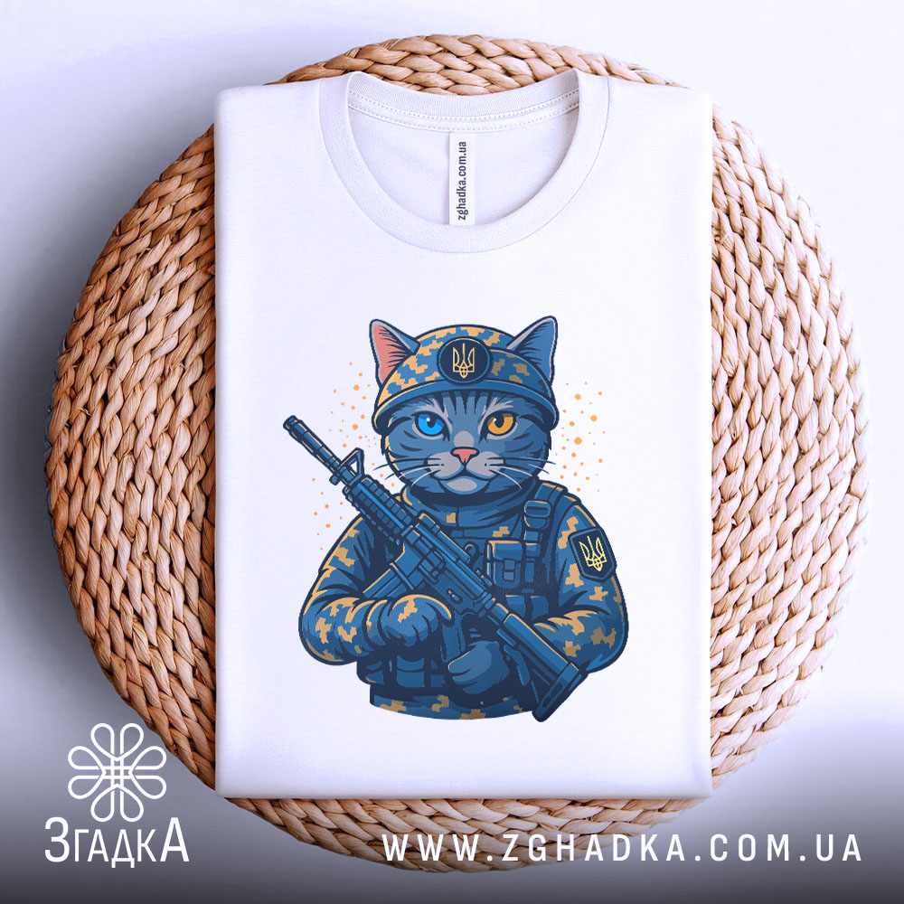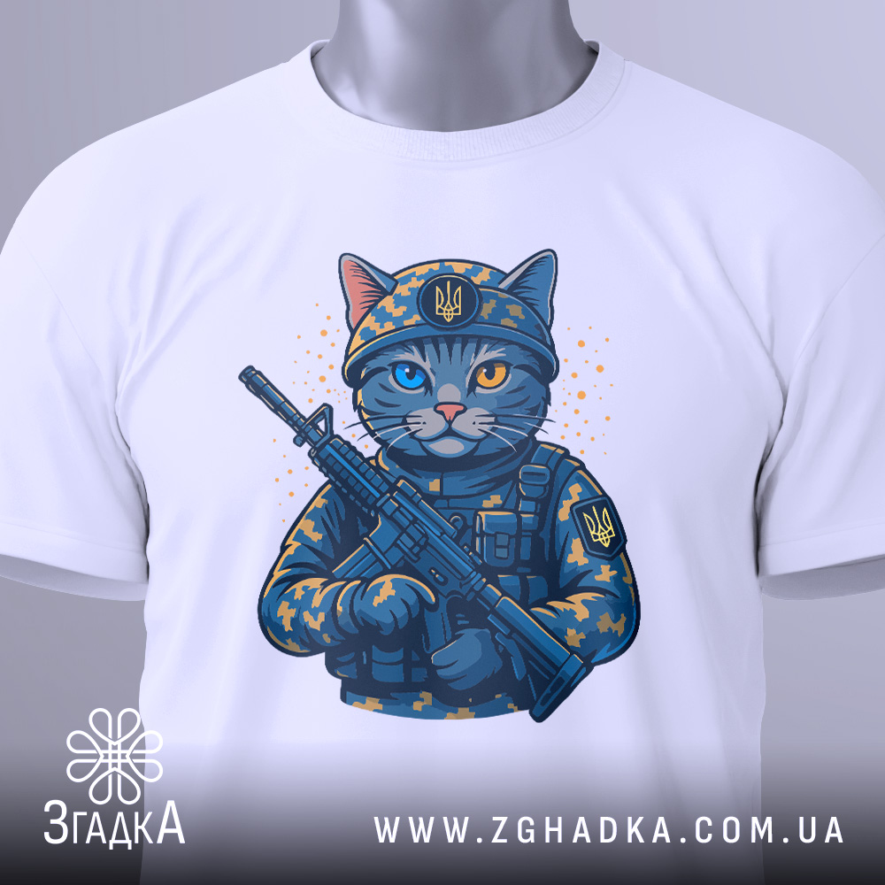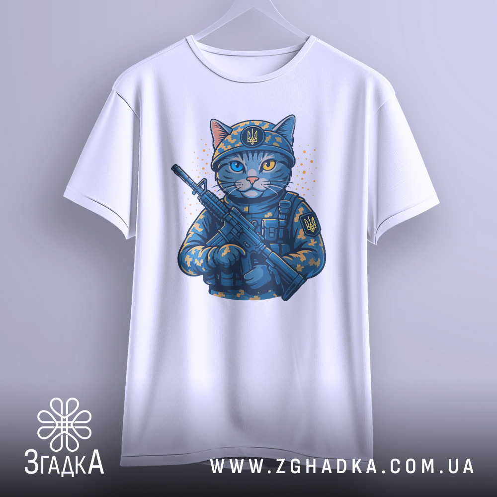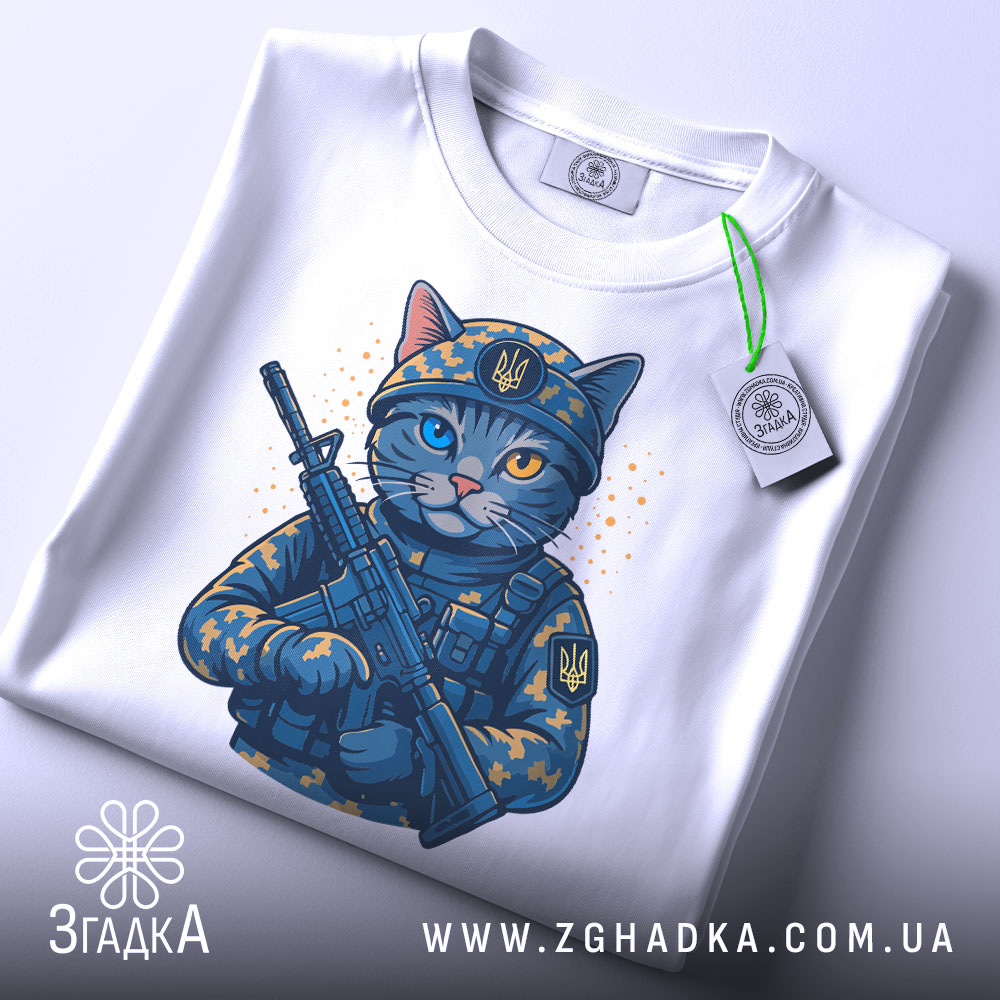 Ця футболка виконана з якісних матеріалів і має оригінальний принт, який символізує силу та доброту. Котик-герой нагадує про важливість бути сміливим у повсякденному житті.