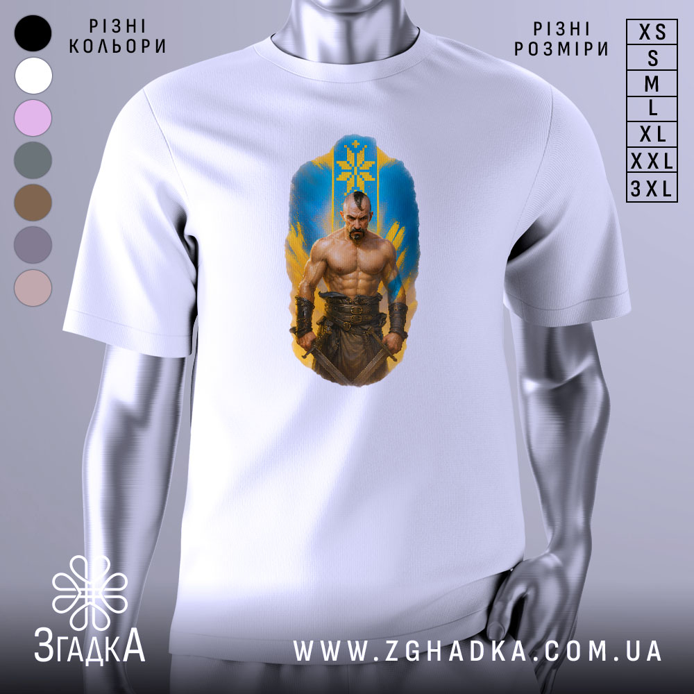 На принті зображено символи козацької культури, що викликають гордість та патріотизм. Ця футболка стане не лише стильним елементом вашого гардеробу, а й виразом вашої ідентичності. Відчуйте силу козацького духу!