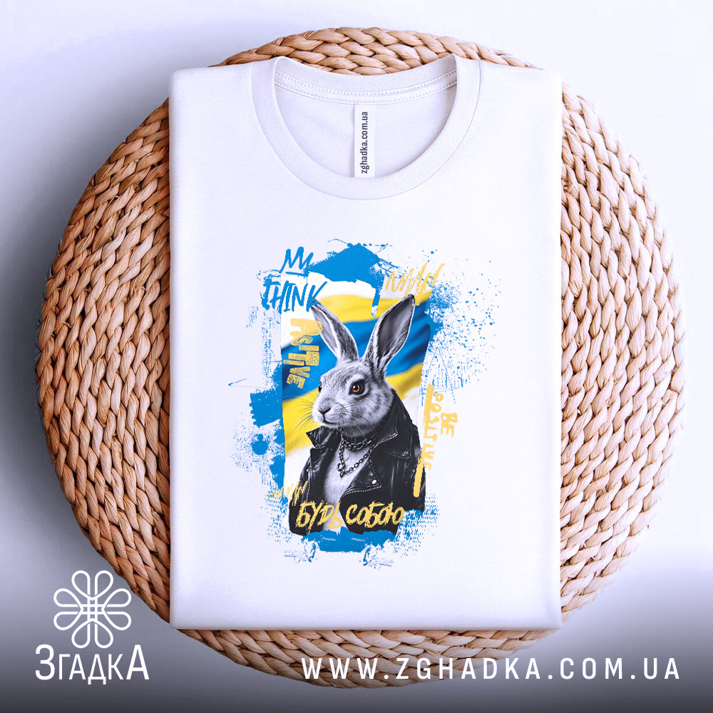 Футболка з милим принтом кролика, що закликає бути собою. Ідеальний вибір для тих, хто цінує стиль та комфорт.